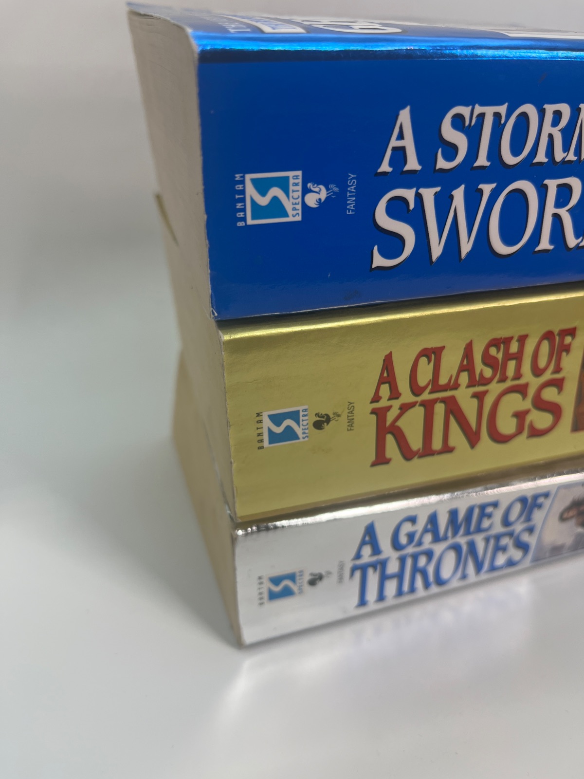 Dive into the epic world of Westeros with this captivating lot of the first three books in George R. R. Martin’s acclaimed series, “A Song of Ice and Fire.” This collection includes “A Game of Thrones,” “A Clash of Kings,” and “A Storm of Swords,” each offering a rich tapestry of political intrigue, betrayal, and the quest for the Iron Throne. These novels have redefined fantasy literature with their complex characters and intricate plots. The first edition of “A Storm of Swords” makes this set a prized possession for collectors. Stephen Youll’s stunning cover art adds to the allure, capturing the essence of Martin’s vivid storytelling. A must-have for any fantasy enthusiast or collector looking to own a piece of literary history.