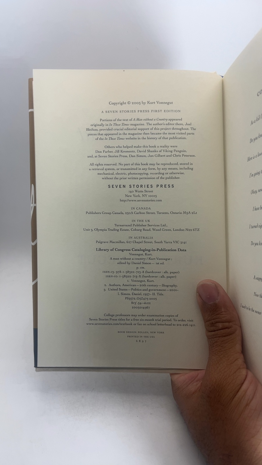 “A Man Without a Country” by Kurt Vonnegut is a poignant collection of essays and reflections from one of America’s most beloved authors. Published by Seven Stories Press in 2005, this first edition offers a unique glimpse into Vonnegut’s mind as he shares his thoughts on life, politics, and the human condition. Edited by Daniel Simon, the book is an assemblage of mini-memoirs that reveal Vonnegut’s family’s legacy and his steadfast humanism. It provides both humor and insight, making it an essential read for fans of Vonnegut’s distinctive voice and perspective. This work captures the essence of Vonnegut’s philosophical musings, wrapped in his signature wit and wisdom.
