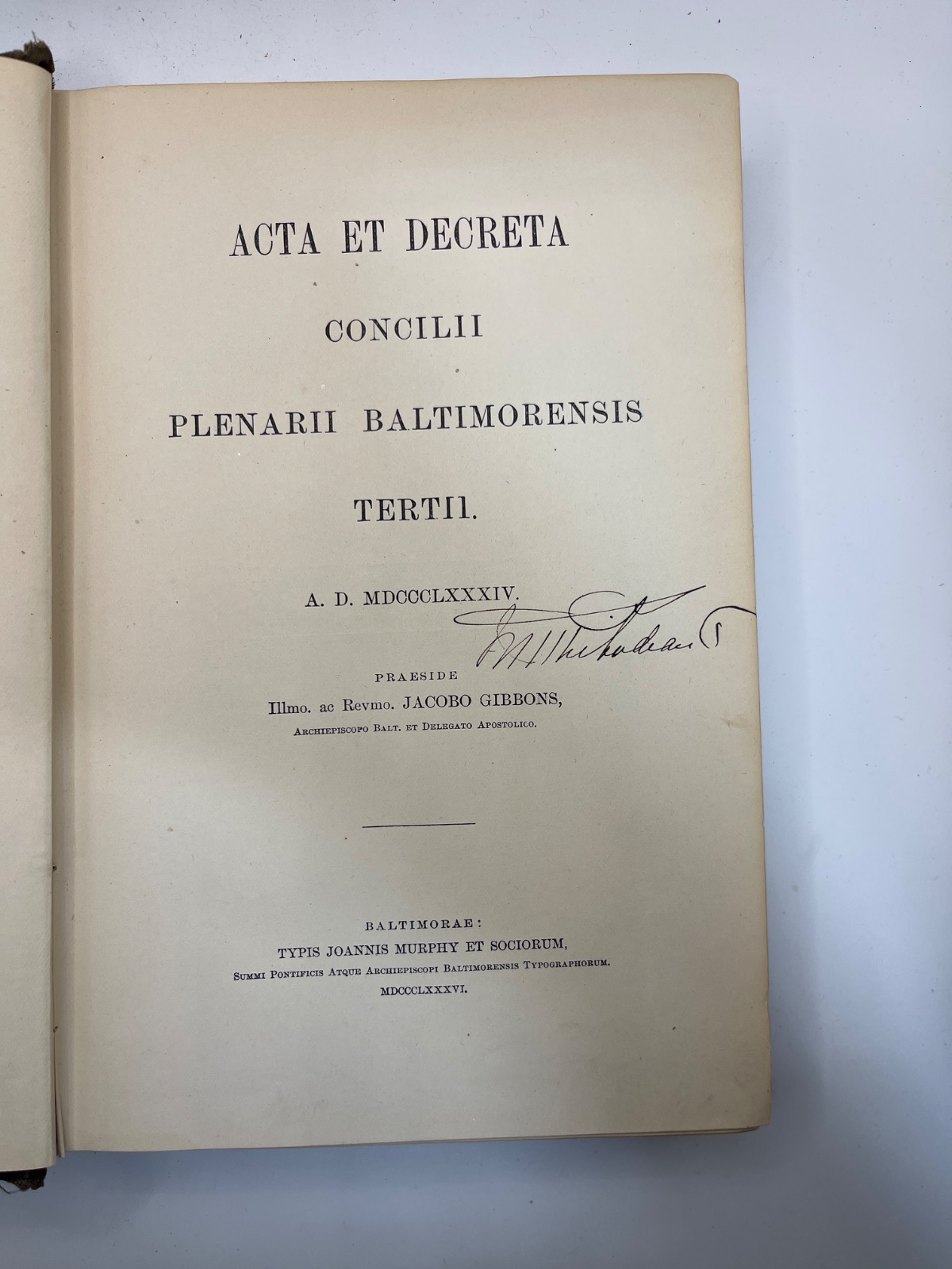 Dive into the historical depths of the Catholic Church with “Acta et Decreta Concilii Plenarii Baltimorensis Tertii,” a significant ecclesiastical document from the Third Plenary Council of Baltimore. Published in 1886 by Typis Joannis Murphy et Sociorum, this volume captures the pivotal decrees and acts that shaped the Church’s direction in America. Presided over by Illmo. ac Revmo. Jacobo Gibbons, this collection offers an authentic glimpse into the religious and cultural dialogues of the time. A vital addition for collectors of religious texts and historians of the Catholic Church, this book is a testament to the enduring legacy of the Baltimore Councils.