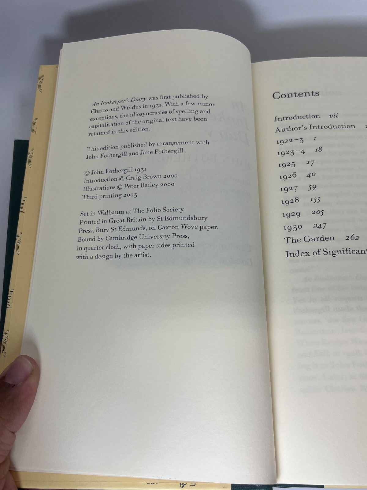 “An Innkeeper’s Diary” by John Fothergill offers a captivating glimpse into the life of an innkeeper during the early 20th century. Published by The Folio Society in 2003, this edition retains the charm and wit that made the original 1931 publication a classic. With illustrations by Peter Bailey, the book brings to life the eccentricities and daily adventures of running an inn. Fothergill’s narrative style is both engaging and insightful, providing readers with a delightful journey through the hospitality world of yesteryear. This beautifully bound edition is a must-have for collectors and enthusiasts of historical memoirs.
