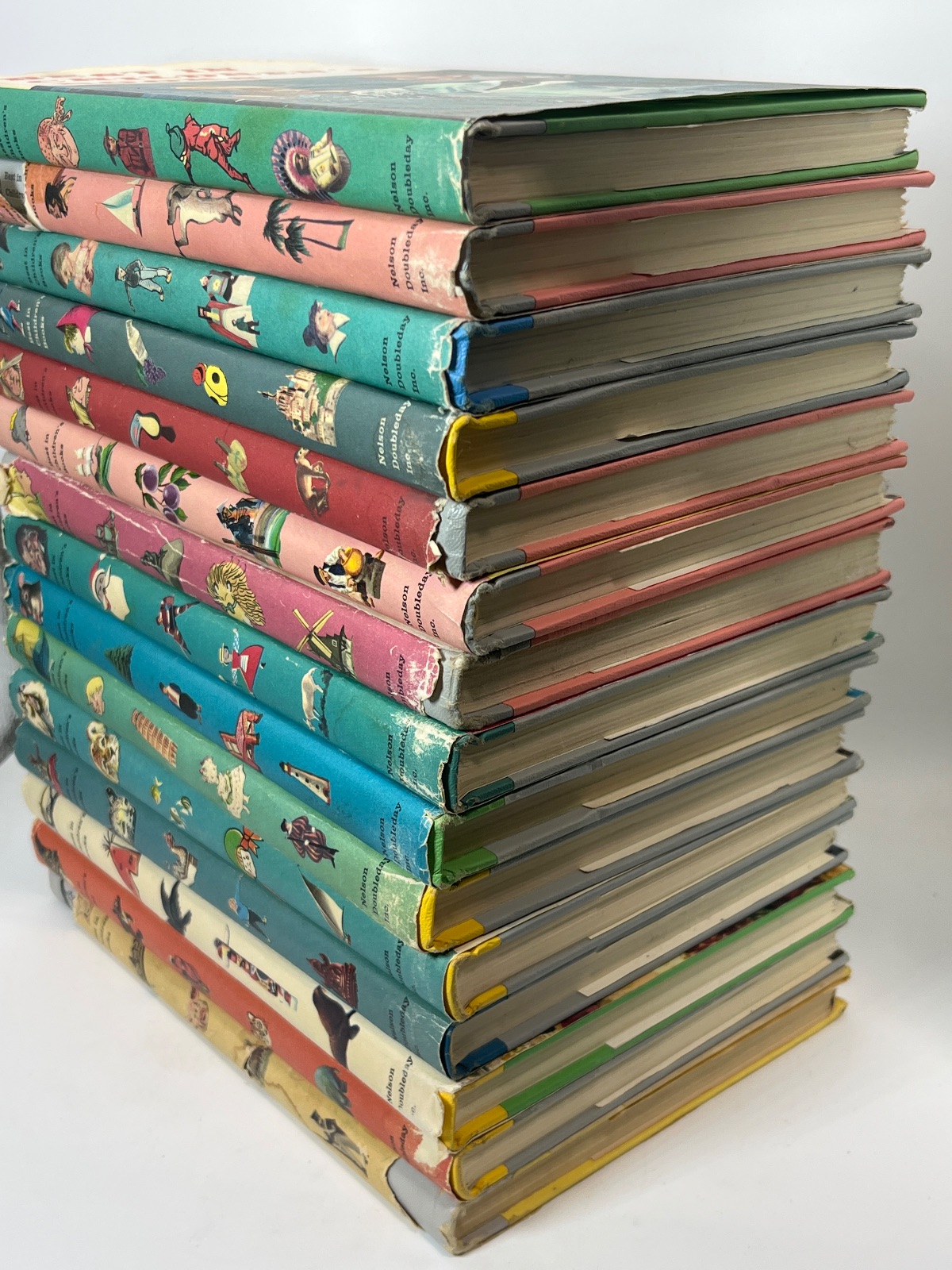 “Best in Children’s Books” is a charming collection from Nelson Doubleday, Inc., featuring a delightful array of stories and illustrations that have captivated young readers for generations. This lot of 15 volumes, each with its own dust jacket, offers a nostalgic journey through classic tales and educational content. With contributions from various authors and illustrators, this series is a treasure trove of children’s literature. The vibrant dust jackets, adorned with whimsical illustrations, make these books not only a joy to read but also a beautiful addition to any bookshelf. Whether you’re a collector or looking to share timeless stories with a new generation, this collection is a wonderful find. ###