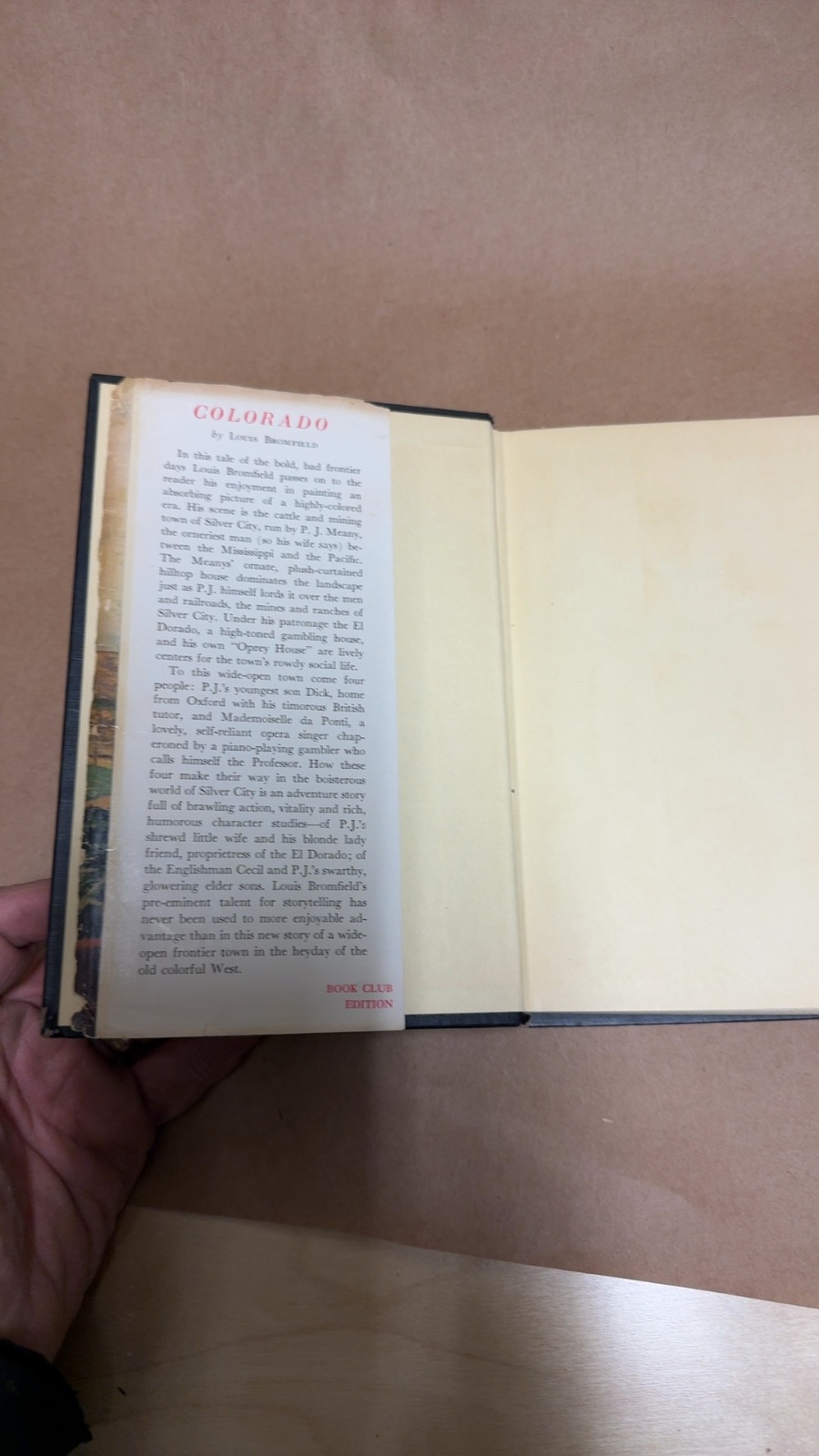 “Colorado” by Louis Bromfield is a captivating narrative set in the vibrant backdrop of a frontier town during the heyday of the American West. This book paints a vivid picture of Silver City, a bustling hub of cattle and mining, where colorful characters such as P.J. Meany and his family navigate the complexities of a rapidly changing world. Bromfield’s storytelling prowess brings to life the drama, adventure, and humor inherent in the lives of these pioneers. As a Book Club Edition, this volume offers a unique glimpse into Bromfield’s imaginative recreation of a bygone era, making it a treasured piece for collectors of Western fiction and historical narratives alike.