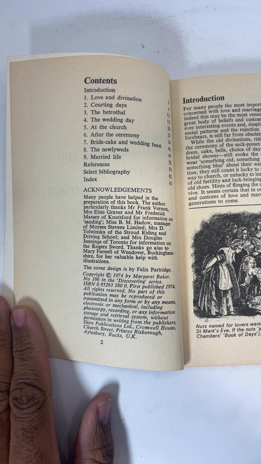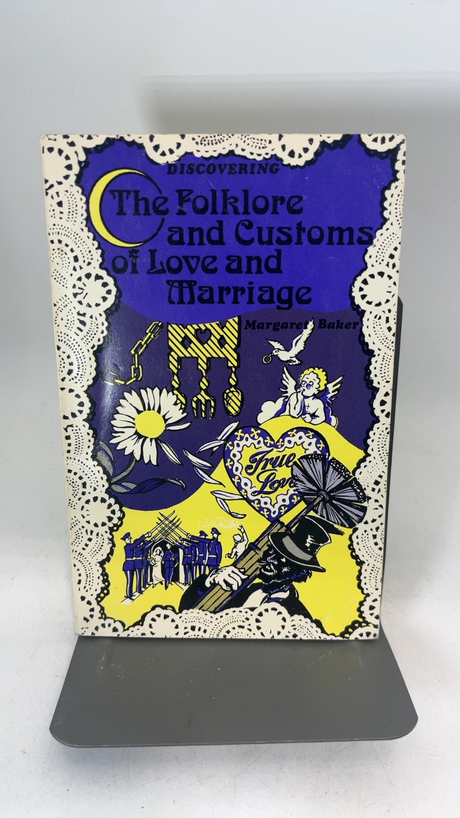 Delve into the enchanting world of love and marriage with “Discovering The Folklore and Customs of Love and Marriage” by Margaret Baker. This captivating first edition, published in 1974 by Shire Publications Ltd., offers a rich exploration of the traditions and beliefs that have shaped matrimonial customs throughout history. From divination practices to the origins of the wedding ring and cake, Baker provides a comprehensive look at how these rituals have evolved and endured. The book is a treasure trove for anyone fascinated by cultural history, revealing the stories behind familiar customs like throwing confetti and tying old shoes to cars. With a cover designed by Felix Partridge, this edition is a charming addition to any collection of folklore or social history.
