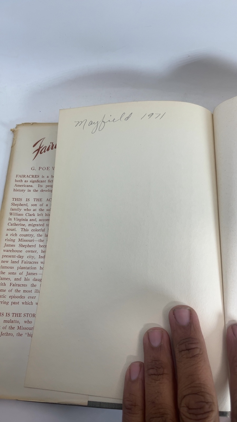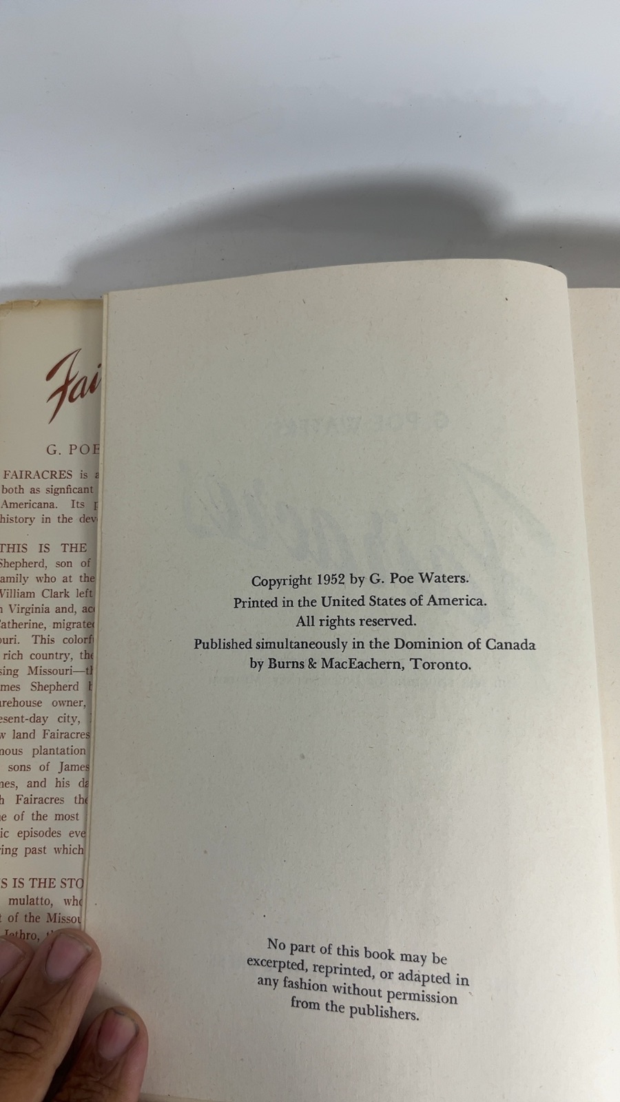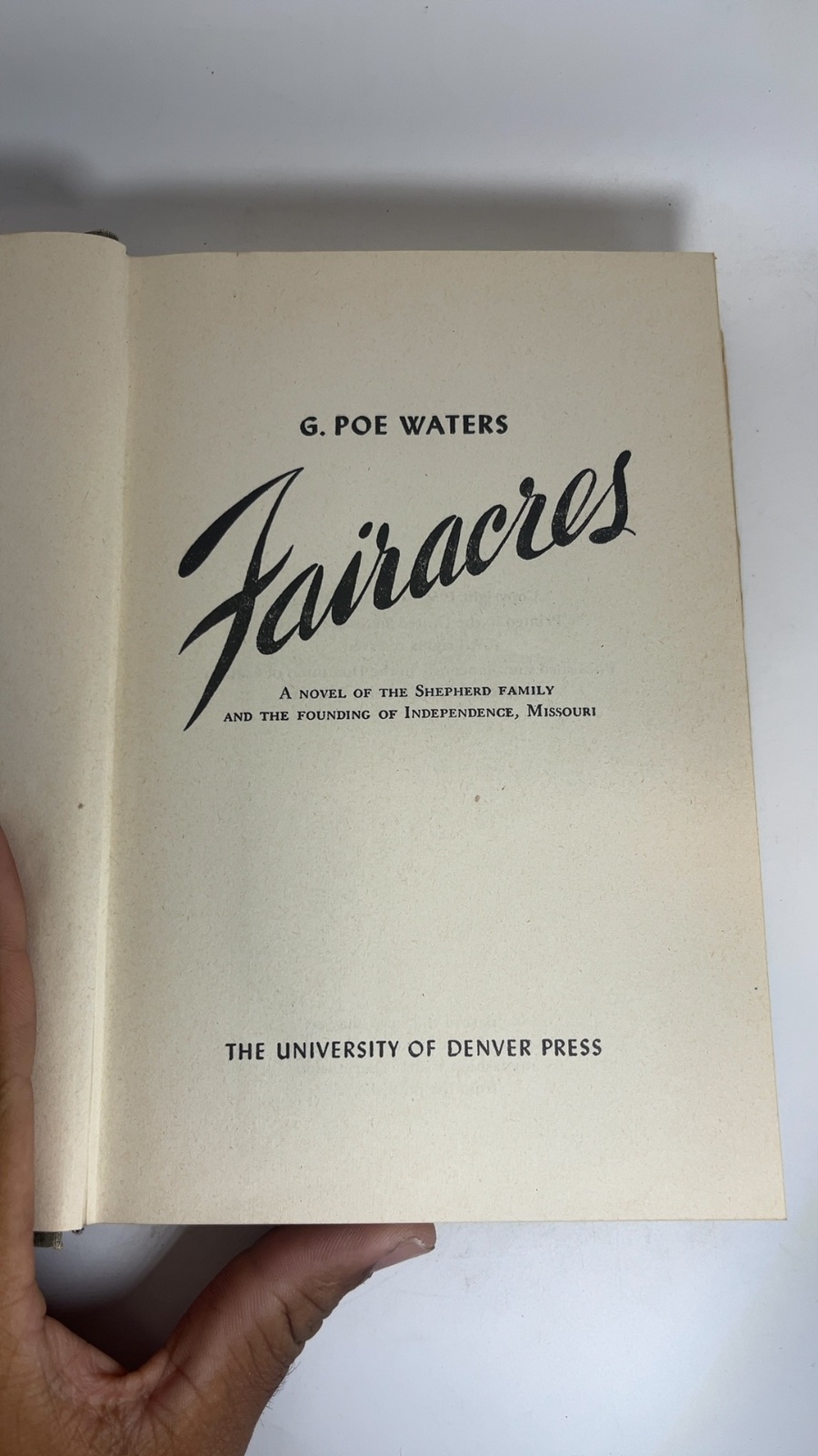 “Fairacres” by G. Poe Waters is a captivating exploration of the Shepherd family’s legacy and the founding of Independence, Missouri. Published by The University of Denver Press in 1952, this historical novel weaves a rich tapestry of American heritage, capturing the essence of a growing nation. The narrative delves into the lives of the Shepherd family, whose journey from Virginia to Missouri is marked by trials, triumphs, and the pursuit of prosperity. The book’s vivid portrayal of early American life and its intricate character development make it a treasured piece of Americana. With a cover designed by Stefanie Halwas, this edition is as visually appealing as it is intellectually enriching. A signed copy, this book offers collectors a unique piece of literary history.