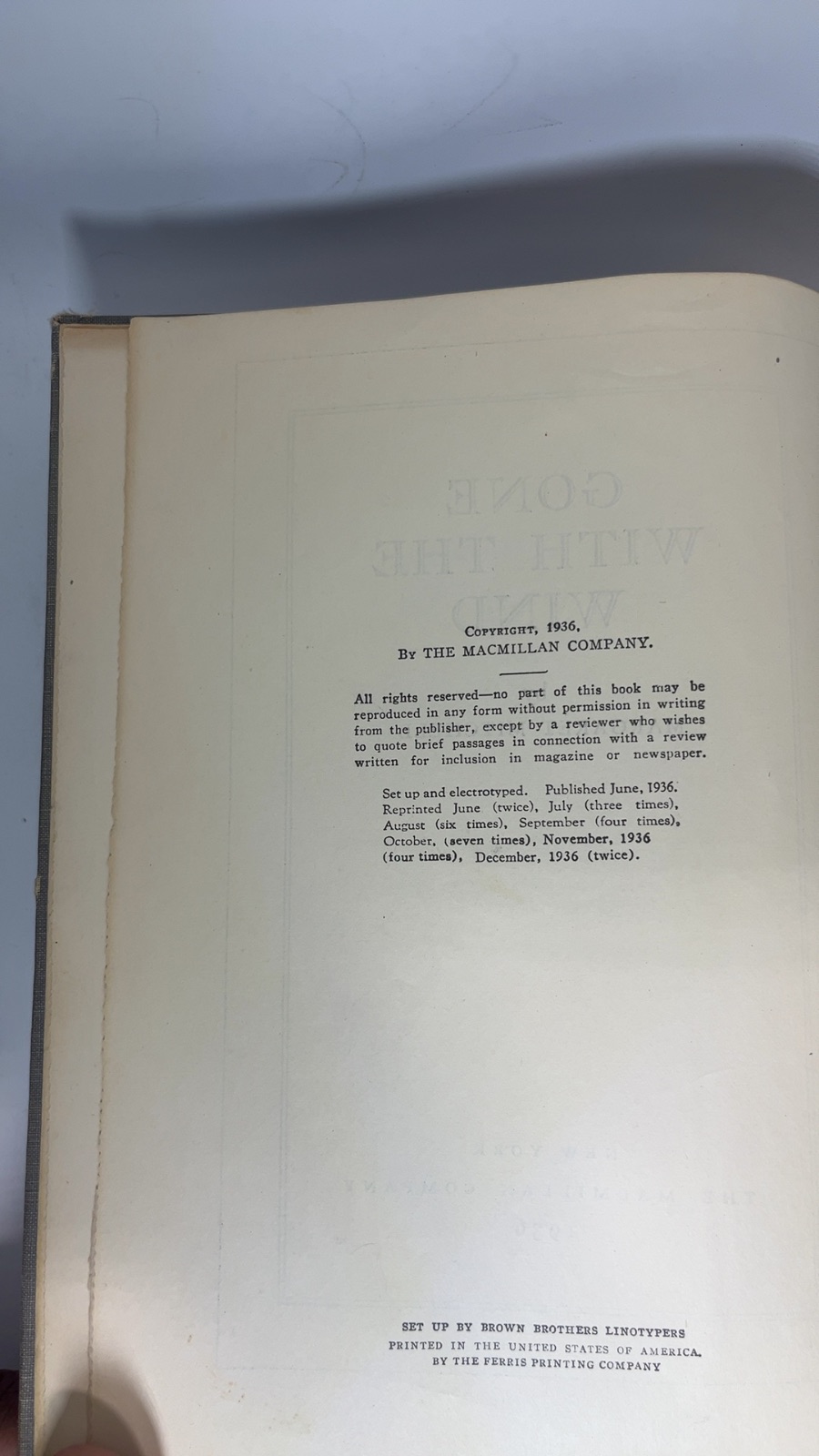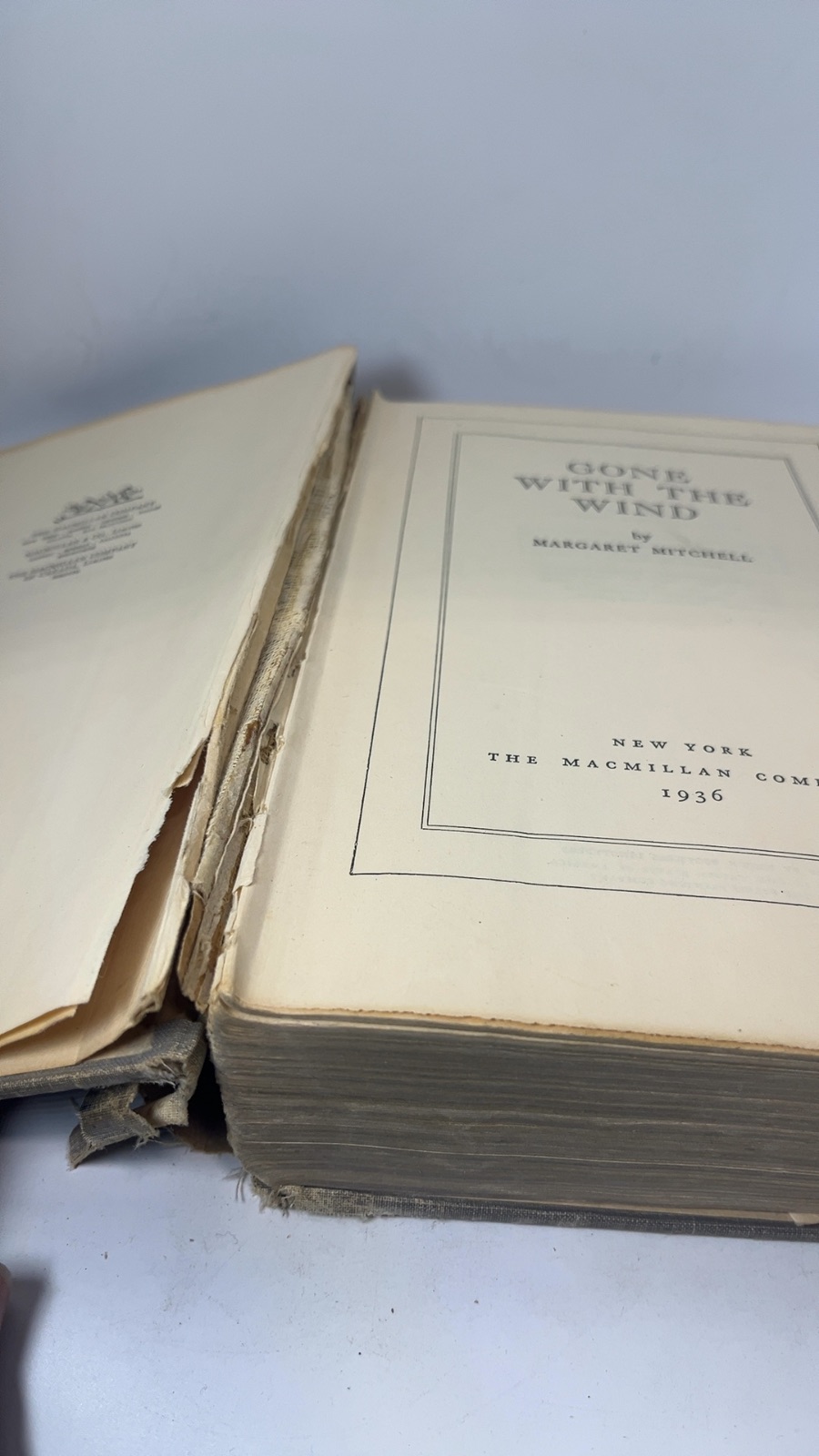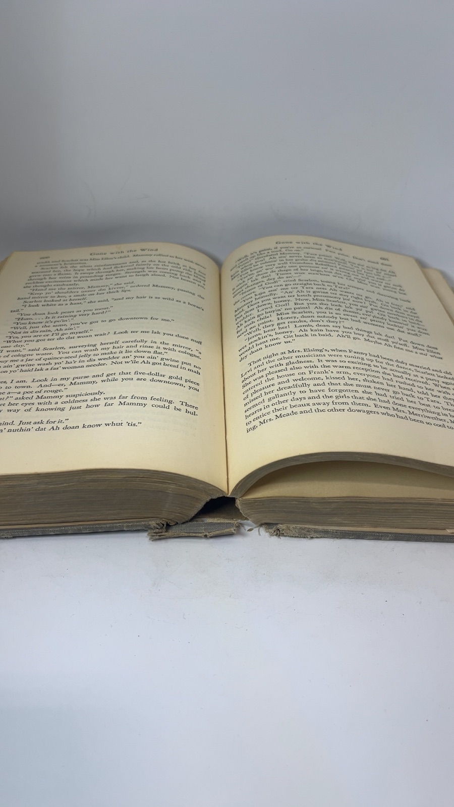 Margaret Mitchell’s “Gone with the Wind” is a timeless classic that captures the tumultuous period of the American Civil War and its aftermath through the eyes of the indomitable Scarlett O’Hara. Published in 1936 by The Macmillan Company, this novel has captivated readers with its rich storytelling and complex characters. Set against the backdrop of the Southern United States, the narrative explores themes of love, survival, and transformation. This particular copy, though lacking a dust jacket, is a piece of literary history that continues to resonate with readers around the world. An inscription adds a personal touch, making this volume a cherished collectible for any book enthusiast.