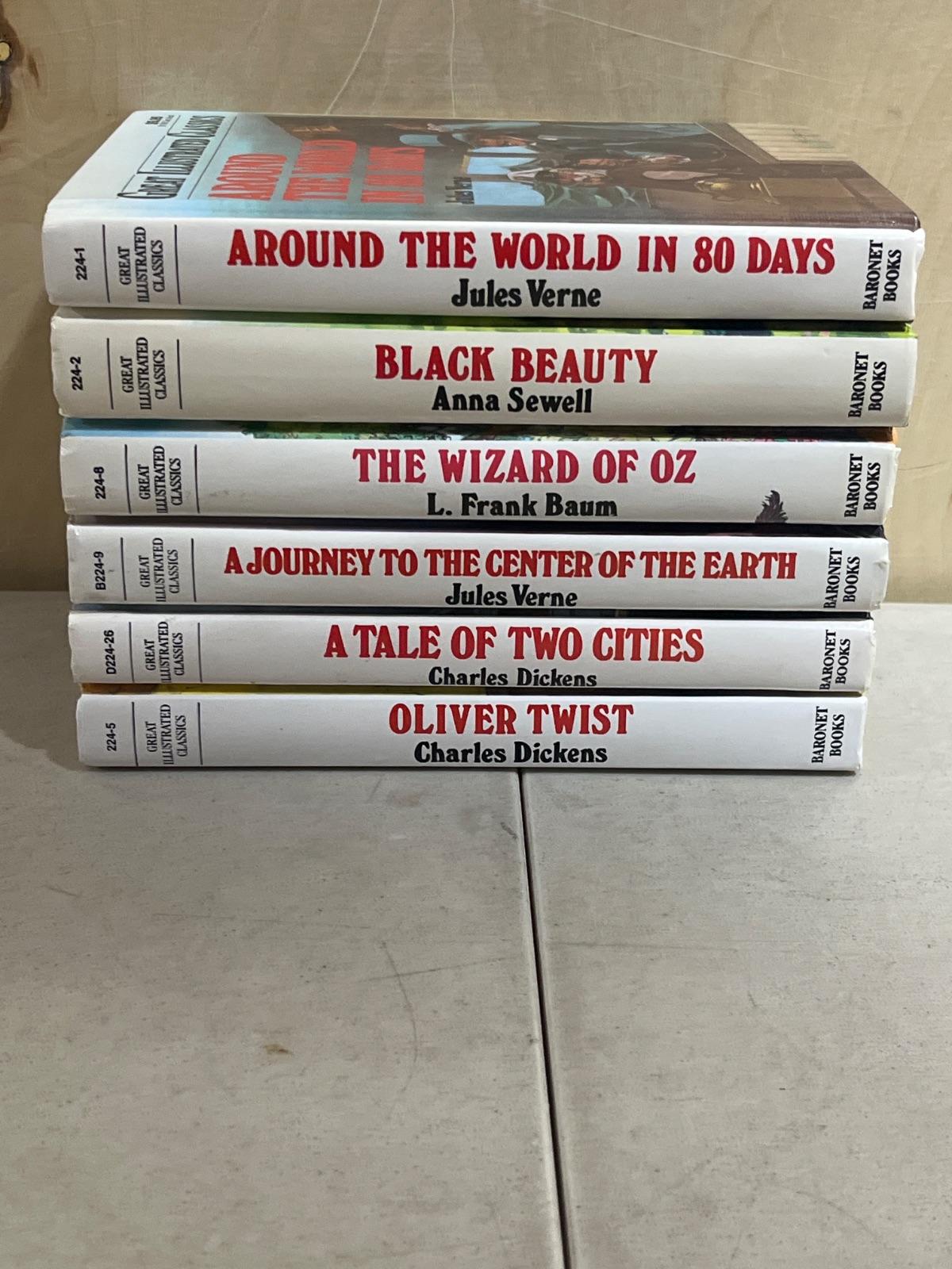 Discover a timeless collection with this lot of six Great Illustrated Classics. Featuring beloved stories from renowned authors like Jules Verne, Anna Sewell, L. Frank Baum, and Charles Dickens, this set offers a journey through adventure, fantasy, and classic literature. Each book is beautifully illustrated, making these classic tales accessible and engaging for young readers and collectors alike. Whether you’re revisiting childhood favorites or introducing these stories to a new generation, this collection is a treasure trove of literary delight.