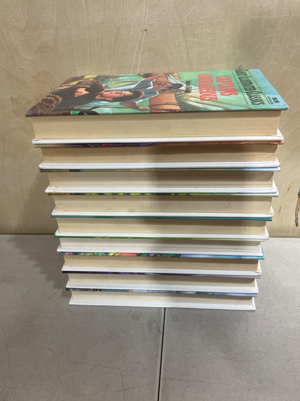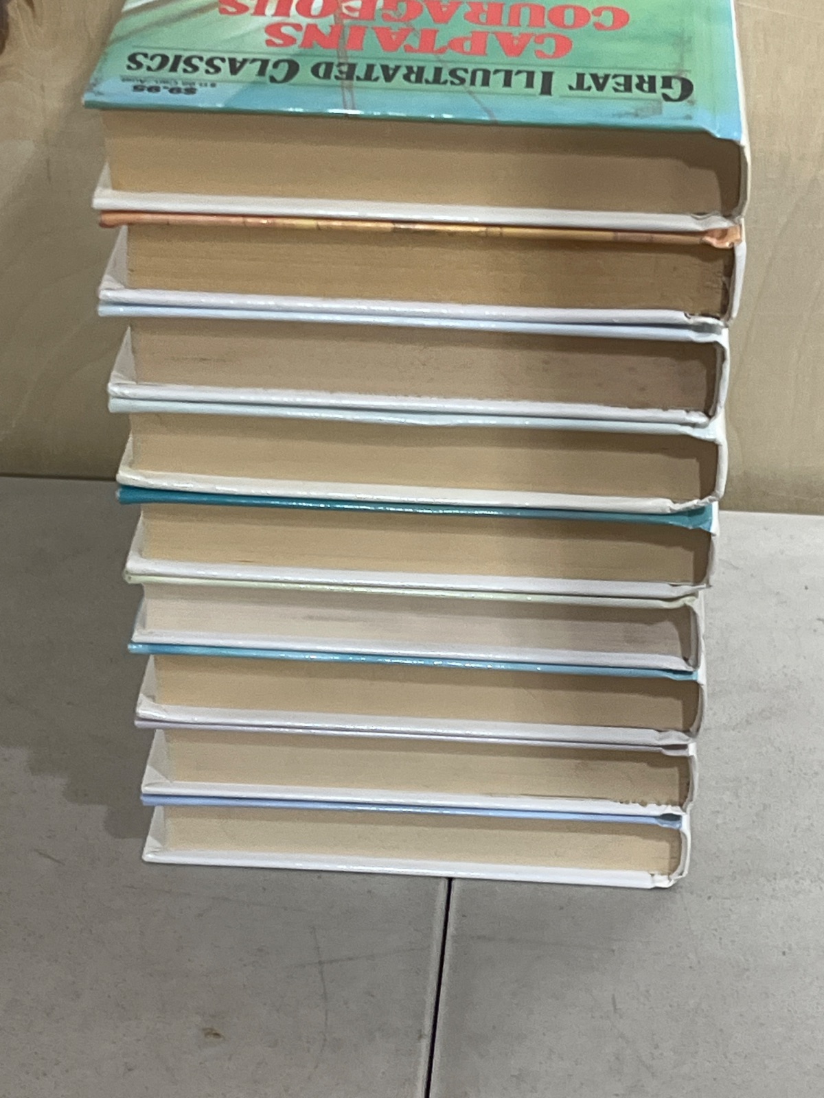 Dive into a world of timeless tales with this captivating lot of nine “Great Illustrated Classics.” Featuring beloved stories from renowned authors like Rudyard Kipling, Charles Dickens, and Jules Verne, this collection brings classic literature to life with engaging illustrations and simplified text. Perfect for young readers and collectors alike, these books offer a gateway to adventure, mystery, and imagination. Whether it’s the high seas with “Captains Courageous” or the magical journey in “The Wizard of Oz,” each volume promises to enchant and educate. Published by Baronet Books, these editions are designed to inspire a lifelong love of reading. ###