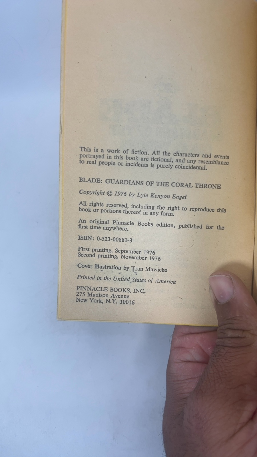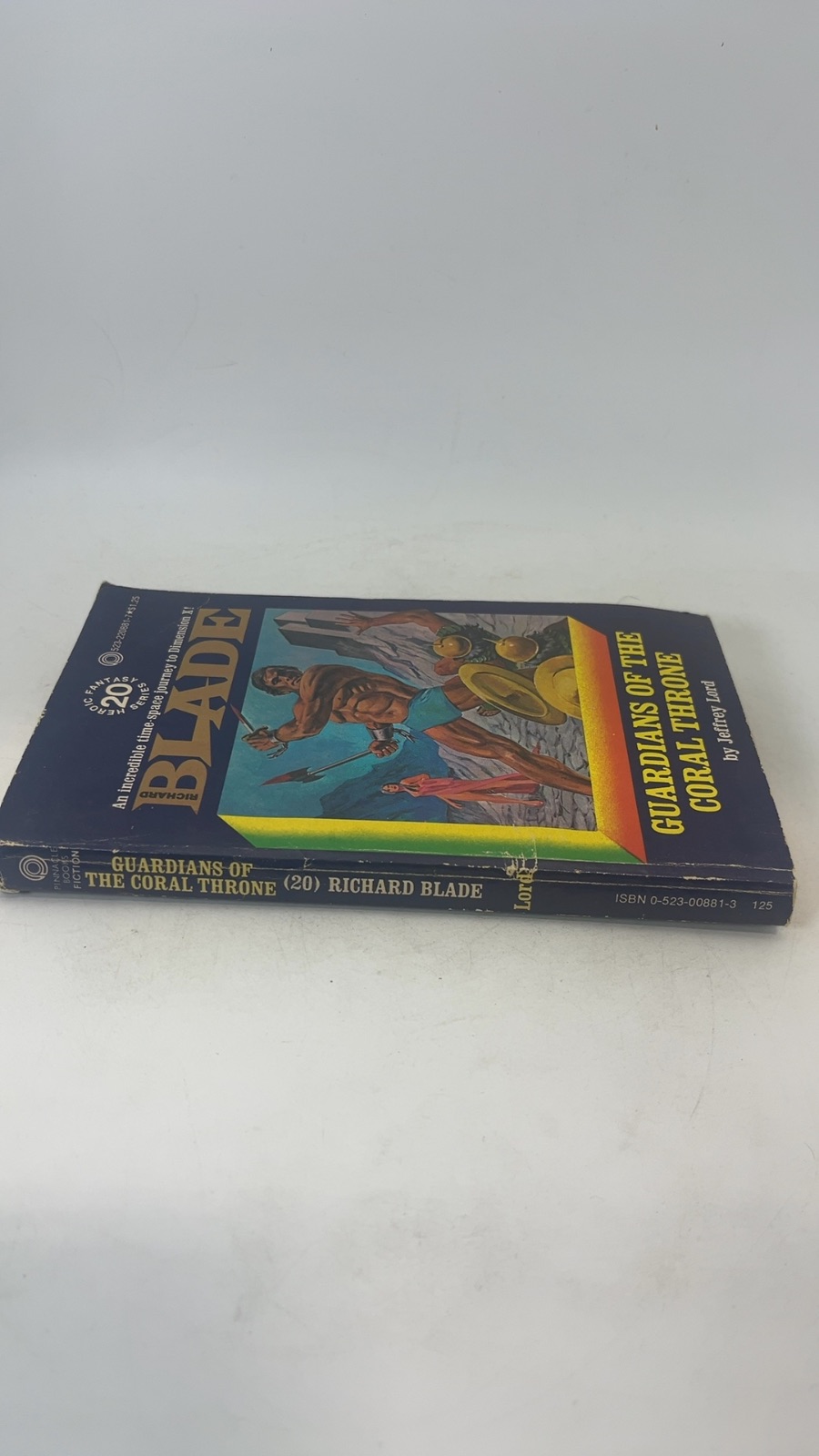 Dive into the thrilling world of “Guardians of the Coral Throne” by Jeffrey Lord, the twentieth entry in the exhilarating Richard Blade series. Published by Pinnacle Books in 1976, this fantasy adventure transports readers to Dimension X, where Blade, a fearless hero, navigates a realm filled with gladiatorial combat and political intrigue. As a Guardian of the Coral Throne, Blade must protect the Emperor while confronting ambitious rivals and deadly plots. With cover art by Tran Mawicke, this book captures the essence of heroic fantasy and is a must-have for collectors and fans of the genre.