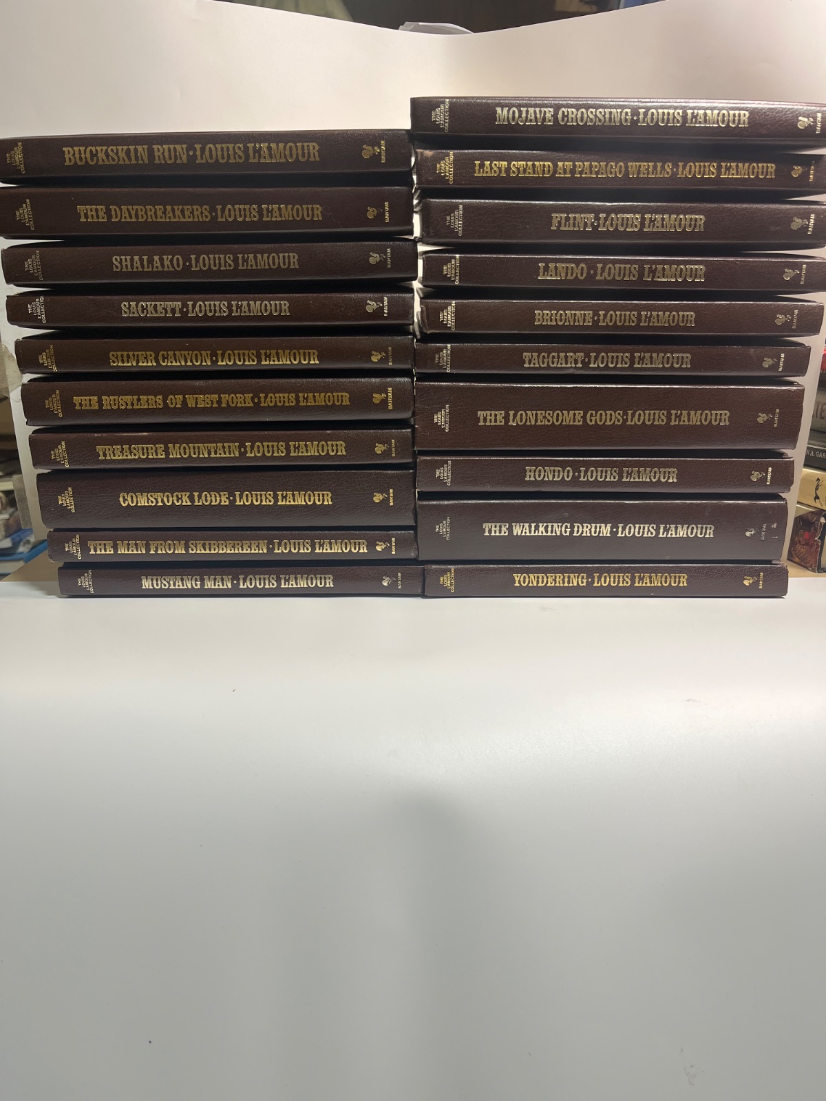 Immerse yourself in the rugged landscapes and gripping tales of the American frontier with this exquisite collection of Louis L’Amour’s works. This mixed lot of 20 leatherette-bound novels from Bantam offers a treasure trove of Western adventure. Each book in this collection showcases L’Amour’s masterful storytelling, bringing to life the grit and determination of pioneers, cowboys, and outlaws. With titles like “The Daybreakers” and “Hondo,” these volumes are a testament to L’Amour’s enduring legacy as one of the greatest Western writers. Whether you’re a seasoned collector or new to the genre, this set promises countless hours of thrilling escapades and timeless narratives.
