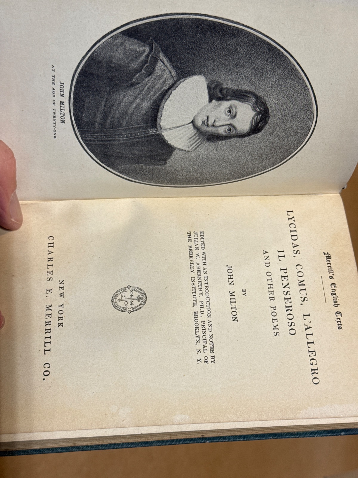 Immerse yourself in the timeless poetry of John Milton with this edition of “Lycidas, Comus, L’Allegro, Il Penseroso and Other Poems,” published by Charles E. Merrill Co. in 1906. This collection captures the essence of Milton’s genius, offering readers a glimpse into the rich tapestry of 17th-century English literature. Each poem is a masterpiece of language and emotion, from the pastoral elegy of “Lycidas” to the contrasting moods of “L’Allegro” and “Il Penseroso.” This edition, part of Merrill’s English Texts series, is designed to enrich the reader’s understanding with introductory notes, making it an invaluable resource for both scholars and poetry enthusiasts. With its classic blue cloth cover, this book is a beautiful addition to any collection of rare and classic literature.