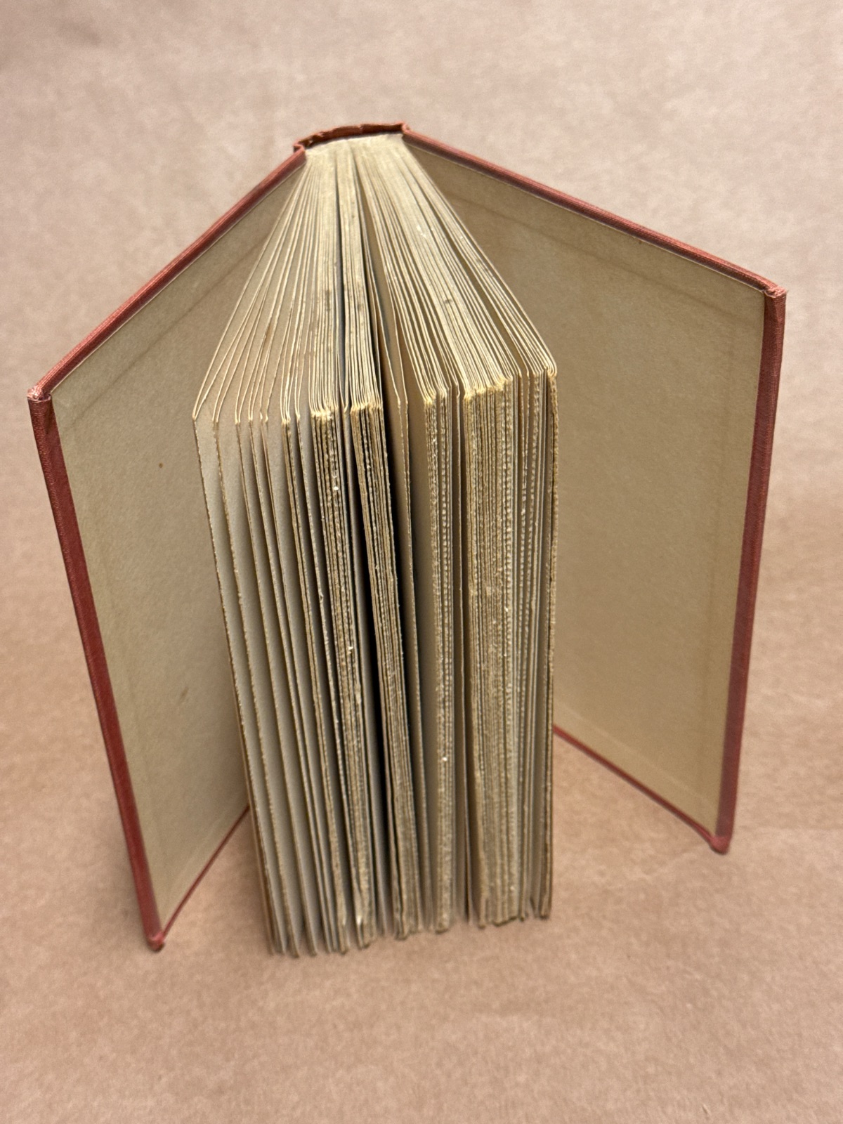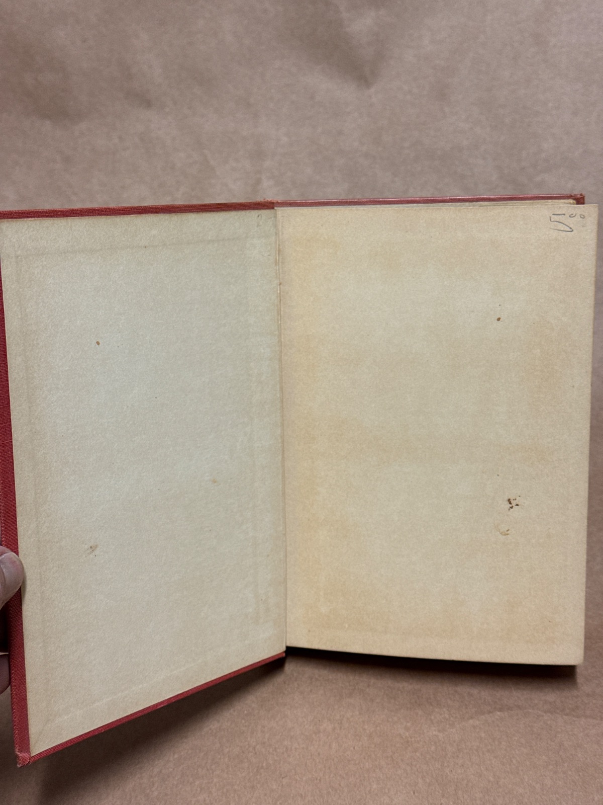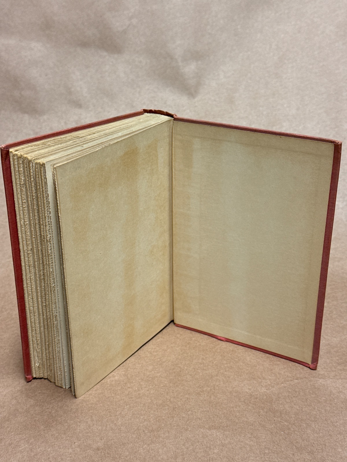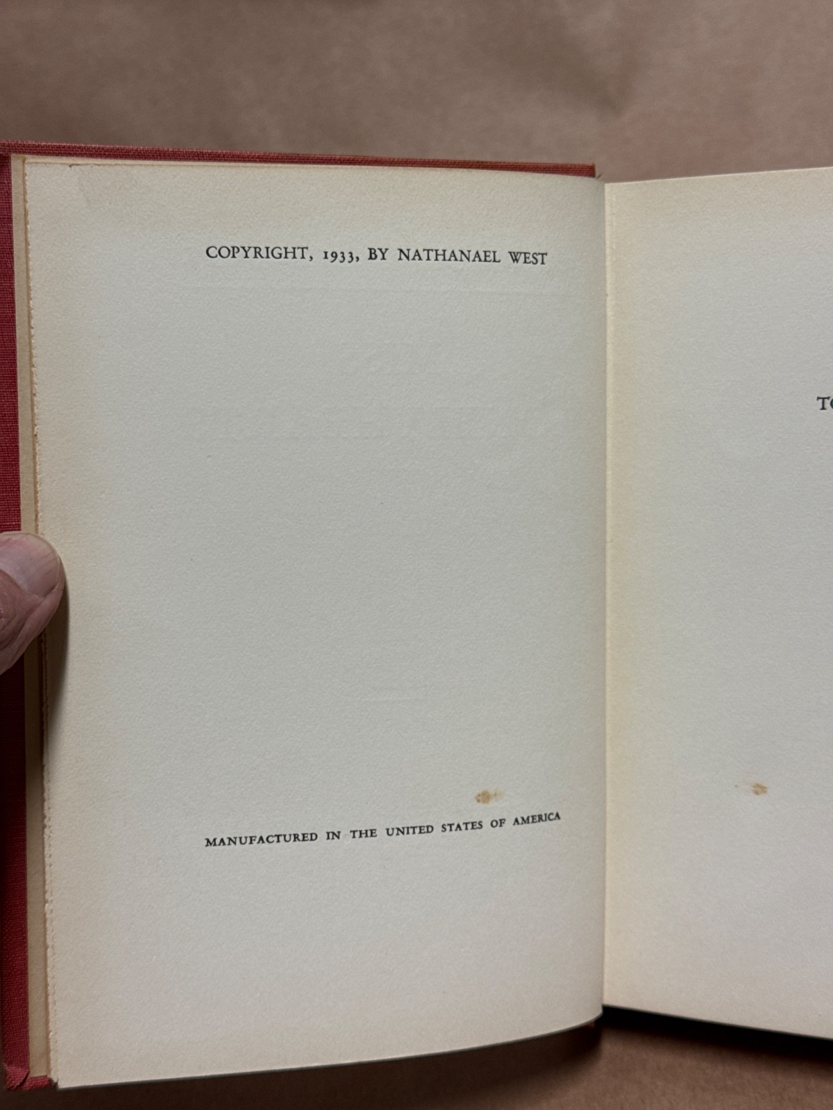 “Miss Lonelyhearts” by Nathanael West, published by Harcourt, Brace and Company in New York in 1933, is a seminal work of American fiction. This edition is bound in red cloth with the title and author embossed on the spine. Nathanael West, a pivotal figure in 20th-century literature, explores the dark undercurrents of the human psyche through the lens of an advice columnist grappling with despair. The book’s exploration of existential themes places it firmly within the satire genre, offering a critical commentary on society. This edition, lacking a dust jacket, is in solid condition with minor wear to the spine and edges. As an early publication, it holds significant value for collectors interested in classic American literature.
