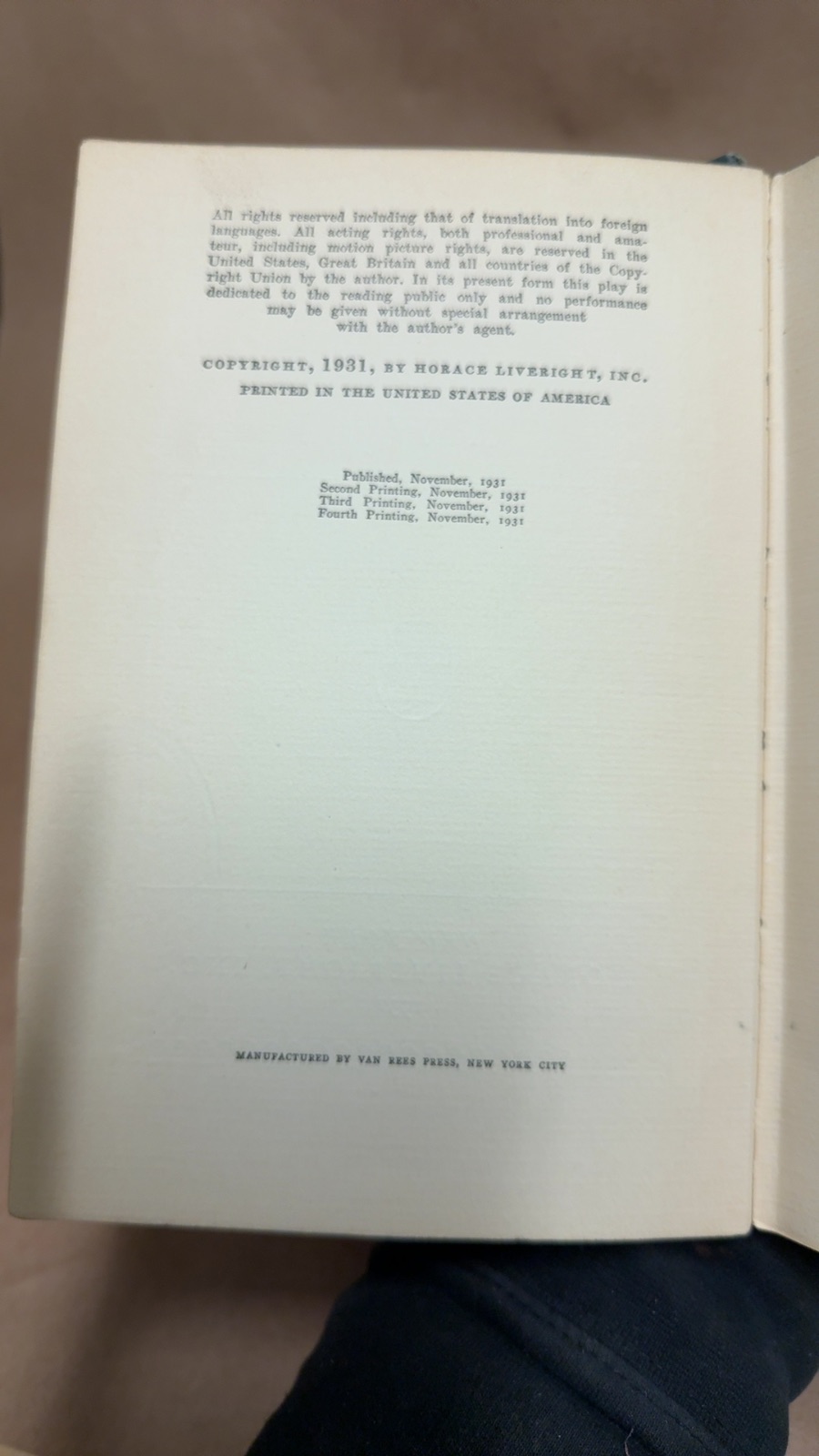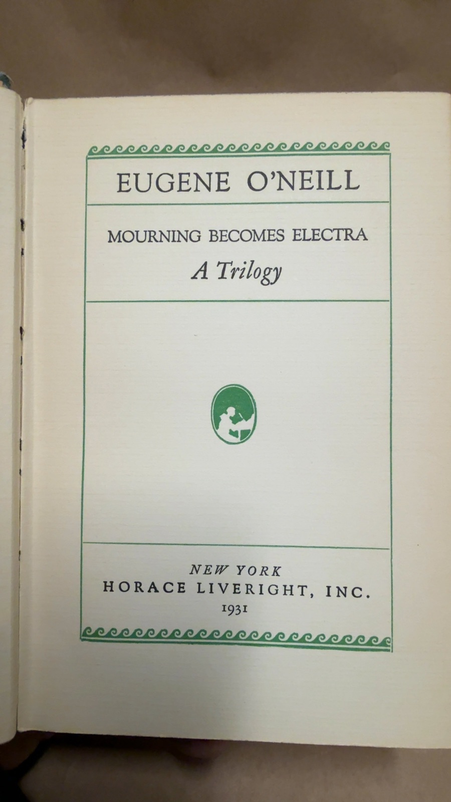 Dive into the depths of human emotion and family tragedy with Eugene O’Neill’s “Mourning Becomes Electra: A Trilogy.” Published by Horace Liveright, Inc. in 1931, this dramatic masterpiece reimagines the Oresteia myth in a post-Civil War American setting. O’Neill’s exploration of dark psychological themes and intricate character studies offers a profound commentary on fate, guilt, and the inescapable bonds of family. This edition, printed in New York, is a testament to O’Neill’s genius in transforming classical themes into modern tragedy. A must-have for collectors and enthusiasts of American drama, this volume captures the haunting beauty and complexity of O’Neill’s work.