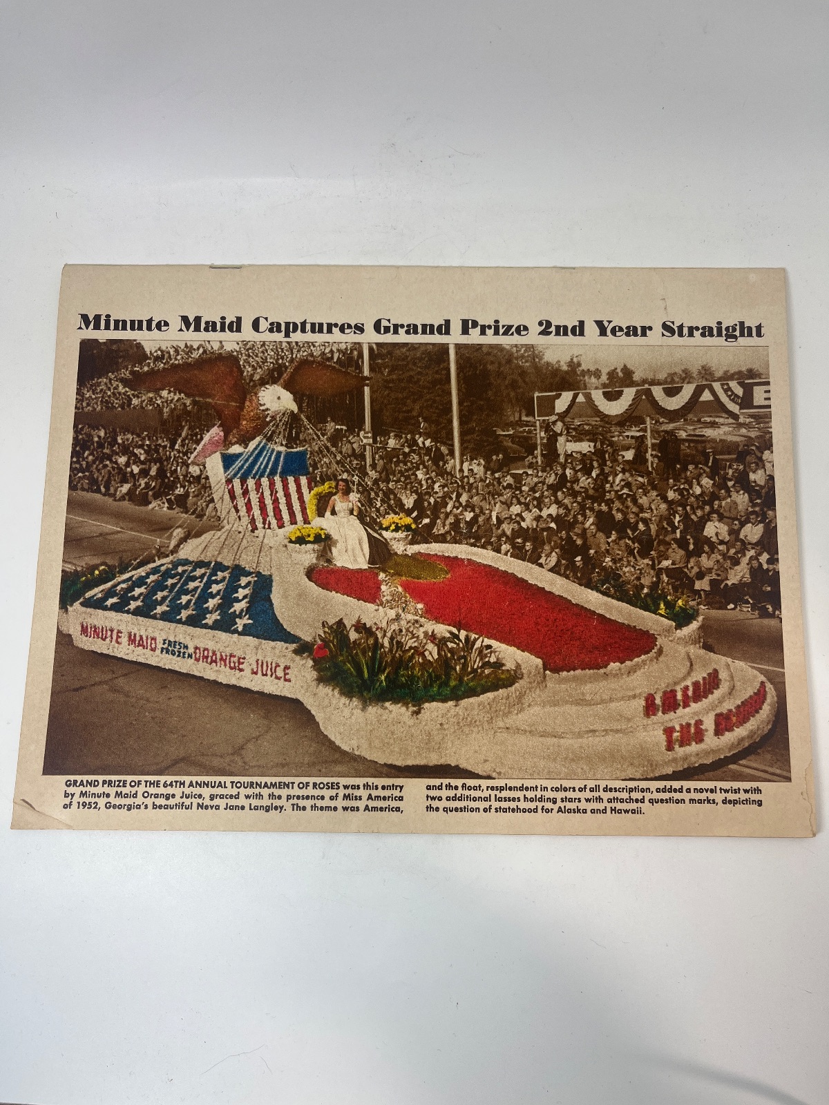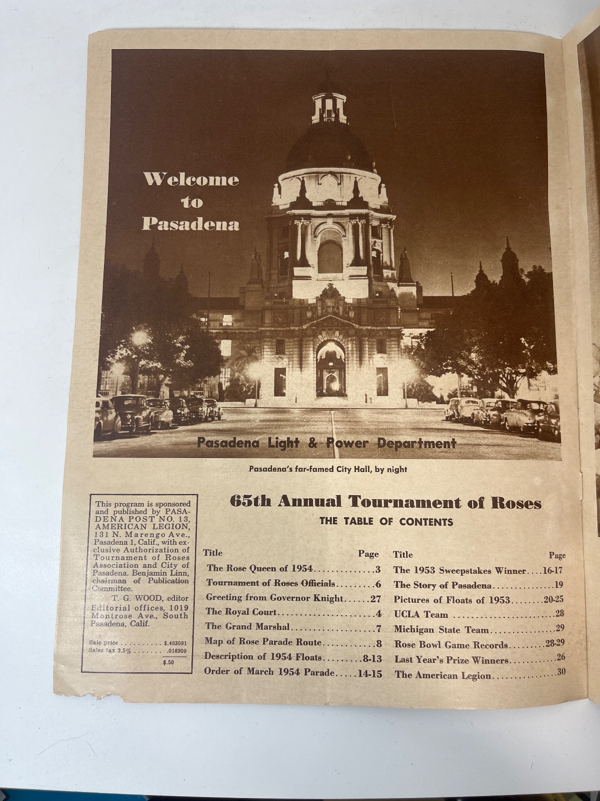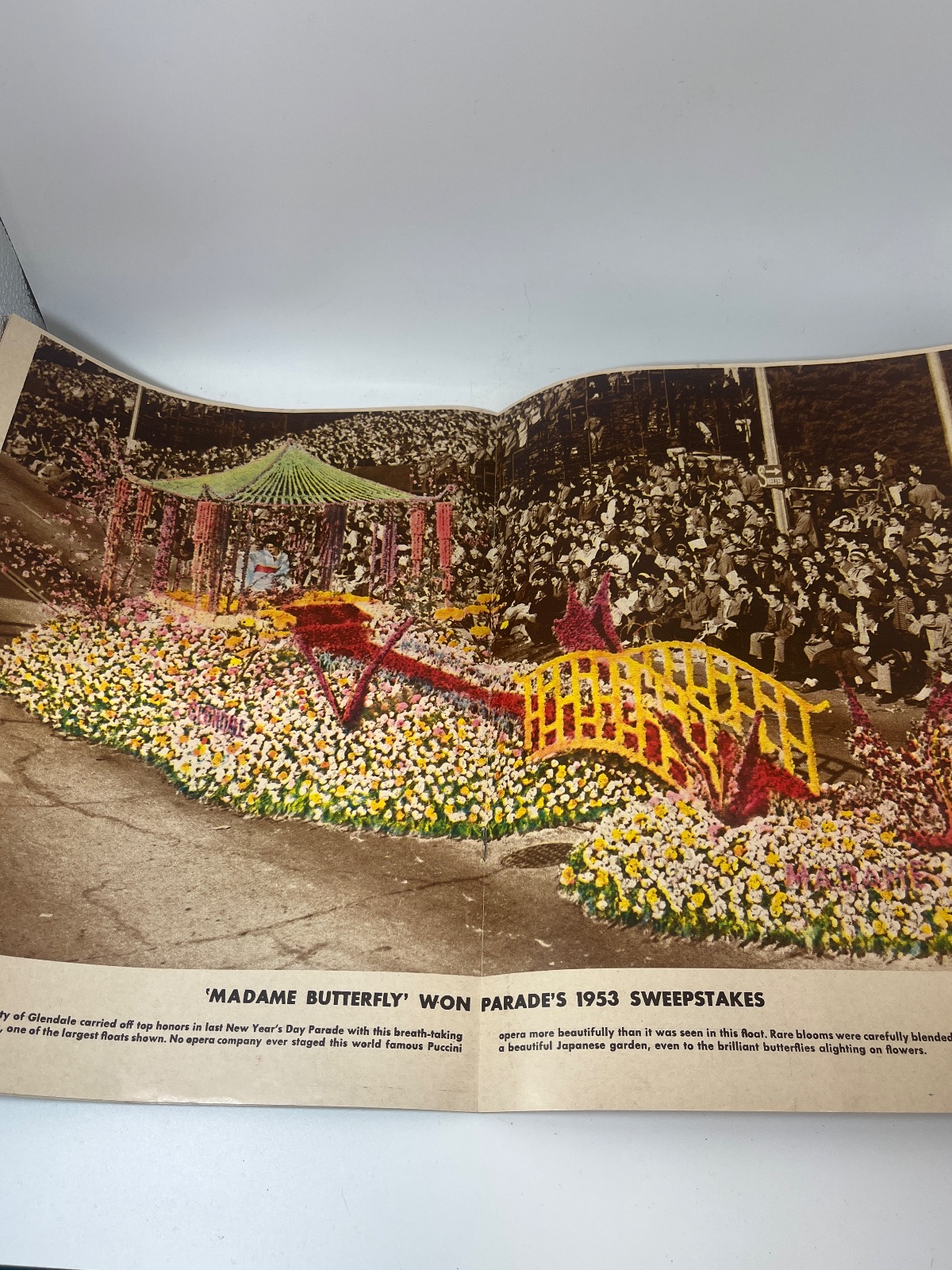 Step back in time with the “Pasadena Tournament of Roses: 1954 Official Program,” a captivating piece of Americana that captures the splendor of one of the most iconic annual events in the United States. Published by the Pasadena Post No. 13, American Legion, this program offers a vivid glimpse into the 65th Annual Tournament of Roses. From the enchanting Rose Queen to the intricate floral floats, this program is a treasure trove of history and tradition. The detailed photographs and descriptions of the parade entries, along with insights into the 1953 and 1954 events, make this a must-have for collectors and enthusiasts of American cultural history.