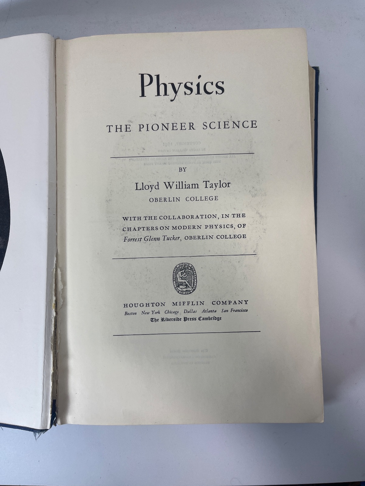 Delve into the foundational world of physics with “Physics: The Pioneer Science” by Lloyd William Taylor. Published in 1941, this seminal work offers a comprehensive exploration of the principles that have shaped our understanding of the physical world. Lloyd William Taylor, in collaboration with Forrest Glenn Tucker, provides profound insights into both classical and modern physics, making it an essential read for enthusiasts and scholars alike. This book, produced by Houghton Mifflin Company, captures the pioneering spirit of scientific inquiry. Whether you’re a collector or a passionate reader, this volume stands as a testament to the enduring quest for knowledge in the field of physics.