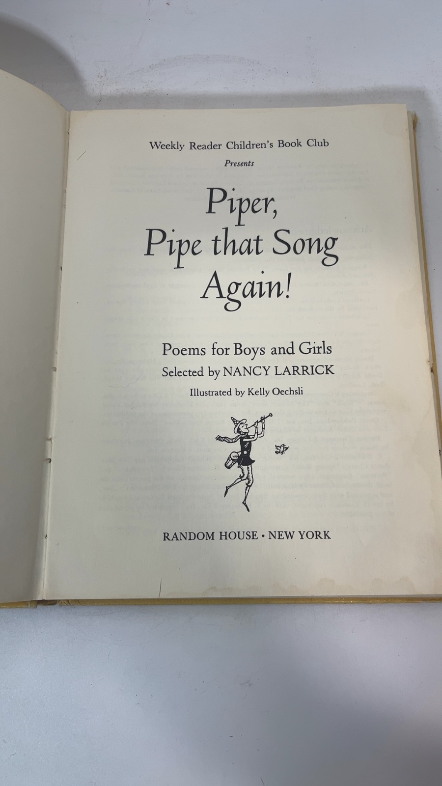 “Piper, Pipe that Song Again!” is a delightful anthology of poems selected by Nancy Larrick, aimed at enchanting young readers with its whimsical and imaginative verses. Published by Random House in 1965, this collection features illustrations by Kelly Oechsli that bring the poems to life, adding a visual charm to the lyrical content. As part of the Weekly Reader Children’s Book Club Edition, this book offers a curated selection of poems that are perfect for both boys and girls, fostering a love for poetry and literature from an early age. The book’s classic appeal and timeless content make it a treasured addition to any children’s book collection, inviting readers to explore the world of poetry through playful and engaging language.