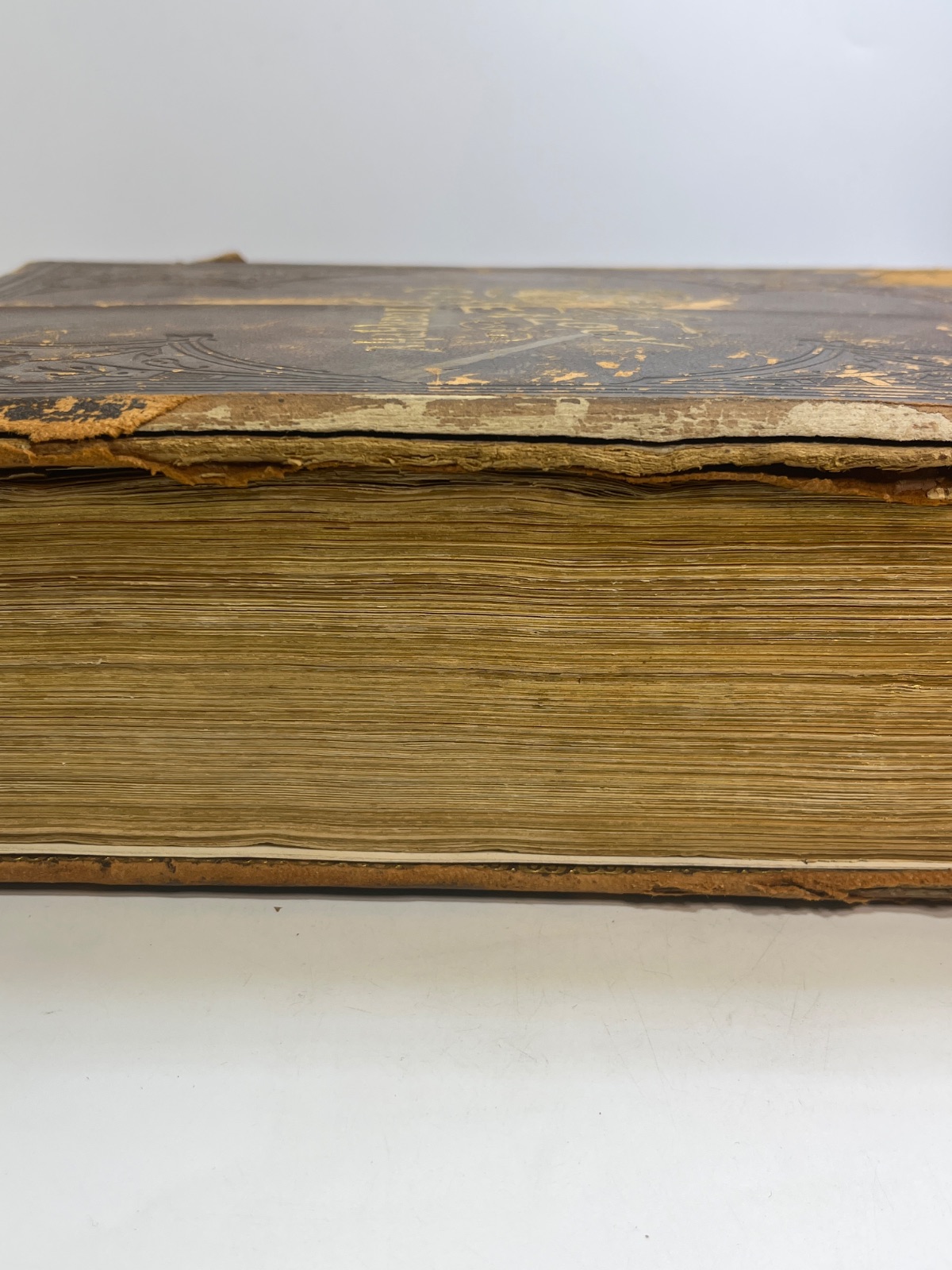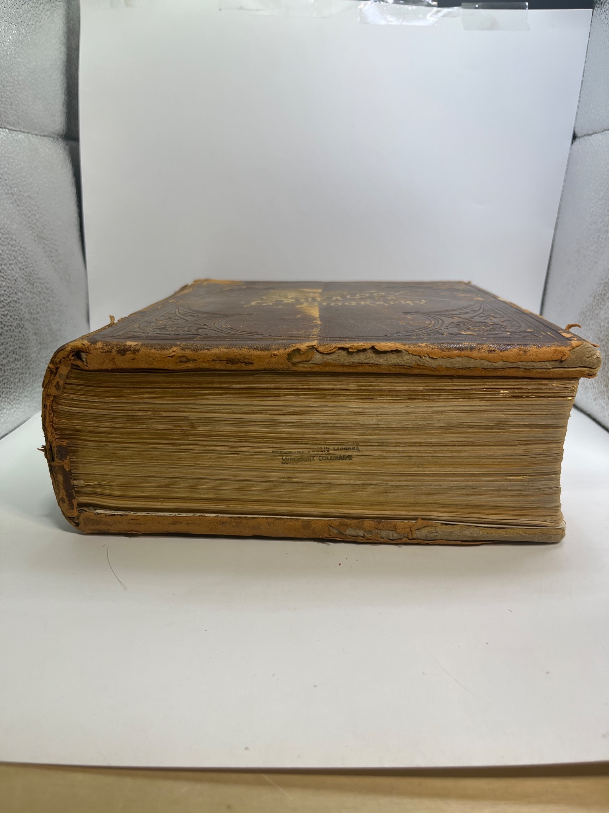 Notes This volume shows significant wear consistent with its age. The leather-bound cover is heavily worn, with notable edge wear and scuffing. The interior pages are intact but show signs of age, including yellowing and some tears. Library markings from the Longmont Public Library are present, and there is a donation inscription by L. H. Dickson. While the book does not have a dust jacket, it remains a valuable piece for collectors and historians.