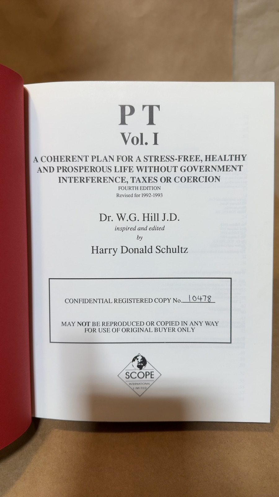 “PT Vol. I” by Dr. W.G. Hill J.D. is an insightful guide designed for those who aspire to live a life free from government interference, taxes, and coercion. This fourth edition, revised for 1992-1993, offers a coherent plan for achieving a stress-free, healthy, and prosperous life. Edited by Harry Donald Schultz, the book delves into the philosophy of becoming a “PT” (Perpetual Traveler or Prior Taxpayer), exploring topics such as personal safety, expatriation, and the economics of freedom. With its focus on personal success and self-help, this book is an invaluable resource for those seeking to navigate an over-governed world and attain optimal freedom. Published by Scope International Ltd., this edition is a confidential registered copy, emphasizing its unique and exclusive content.