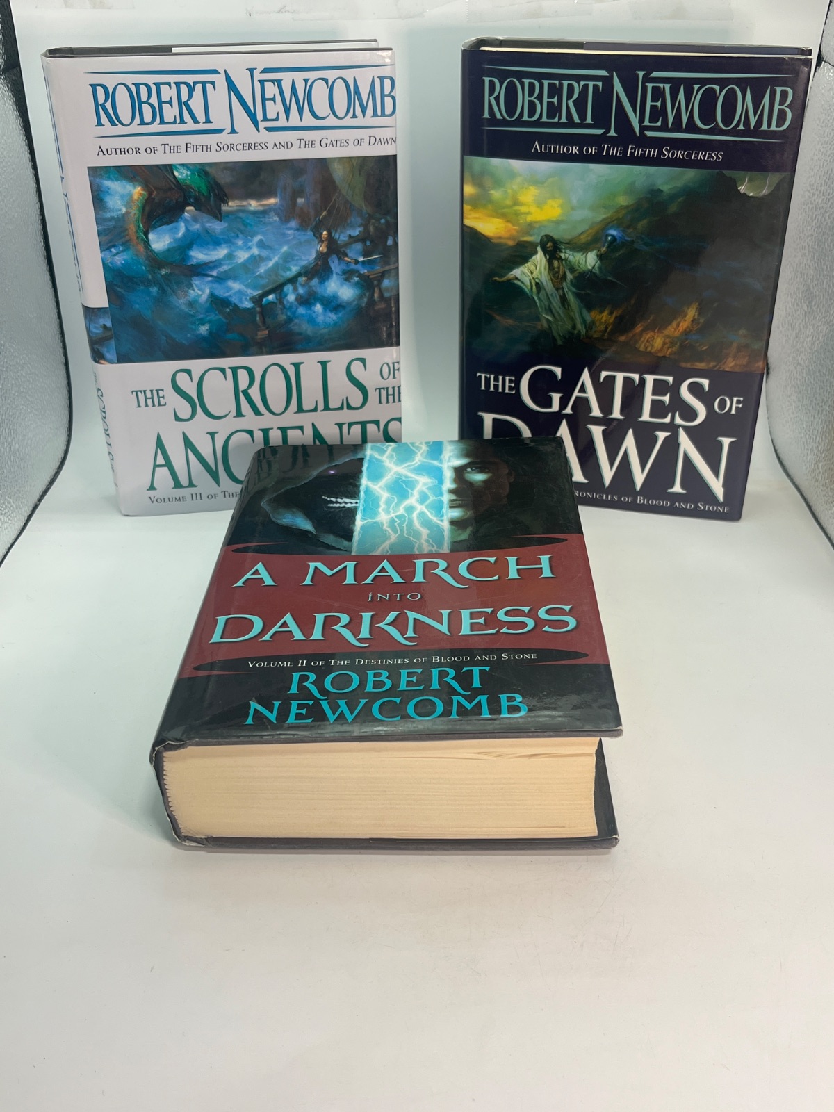 Dive into the fantastical realms crafted by Robert Newcomb with this captivating mixed lot of three novels. “The Gates of Dawn,” “The Scrolls of the Ancients,” and “A March into Darkness” transport readers into a world brimming with magic, adventure, and epic quests. Each book is a testament to Newcomb’s ability to weave intricate tales of heroism and mystery. Published by Del Rey Books, these volumes are ideal for fantasy enthusiasts eager to explore the depths of Newcomb’s richly imagined universe. Whether you’re a collector or a new reader, this set offers a thrilling journey through lands of enchantment and peril.