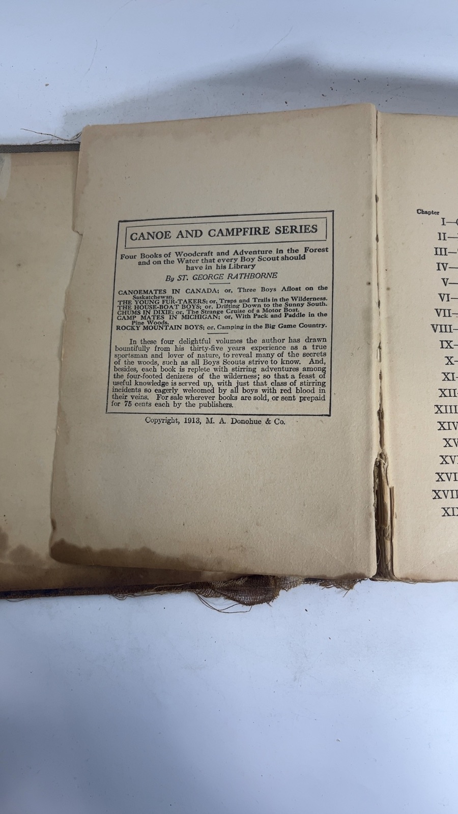 Dive into the adventurous world of the “Rocky Mountain Boys or Camping in the Big Game Country” by St. George Rathborne. Published in 1913 by M. A. Donohue & Co., this captivating tale transports readers to the rugged terrains of the Rocky Mountains, where youthful spirit and wilderness exploration intertwine. Rathborne, known for his vivid storytelling and affinity for adventure, crafts a narrative that captures the essence of boyhood curiosity and the thrill of the unknown. This book is a testament to the timeless allure of nature and adventure, making it a cherished addition for collectors and enthusiasts of classic youth fiction.