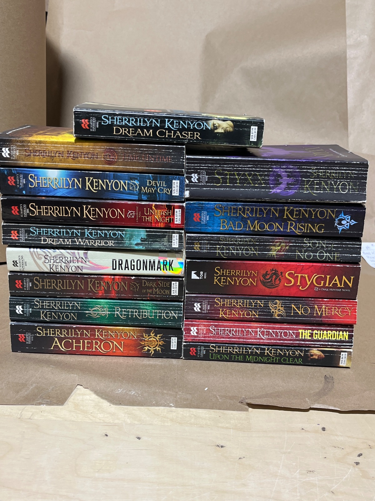 Dive into the captivating world of Sherrilyn Kenyon with this mixed lot of 16 novels from her acclaimed Dark-Hunter and Dream-Hunter series. Known for her immersive storytelling and richly developed characters, Kenyon’s novels blend elements of fantasy, romance, and mythology. This collection offers a thrilling journey through the lives of immortal warriors and their battles against dark forces. Whether you’re a long-time fan or new to Kenyon’s universe, these books promise an unforgettable reading experience filled with intrigue, passion, and adventure.