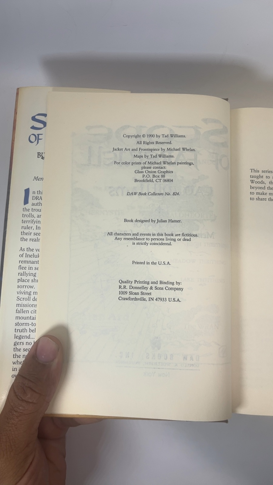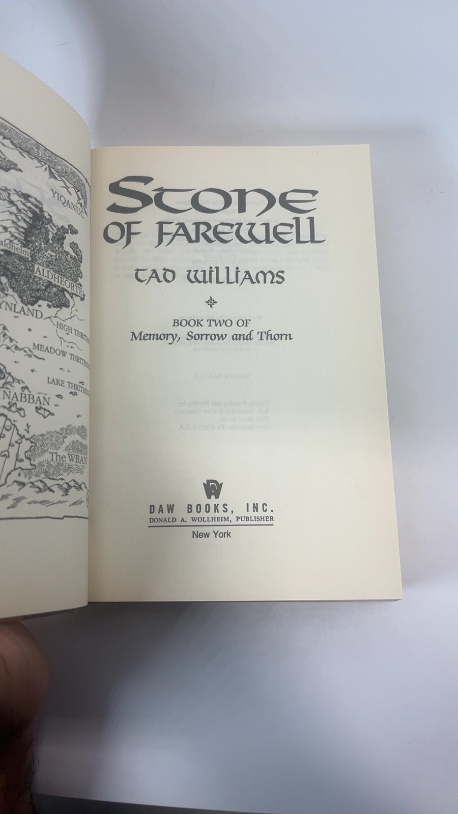 “Stone of Farewell” by Tad Williams is the captivating second book in the “Memory, Sorrow and Thorn” series, a cornerstone of epic fantasy literature. This novel continues the saga of Simon and his companions as they navigate a world fraught with magic, danger, and intrigue. Williams masterfully weaves a tale of adventure and mystery, set against a richly detailed backdrop that draws readers into a realm where ancient powers and legendary creatures abound. The book features stunning jacket art by Michael Whelan, enhancing its appeal to collectors and fans of the genre. This edition is a must-have for those who appreciate intricate world-building and compelling storytelling.