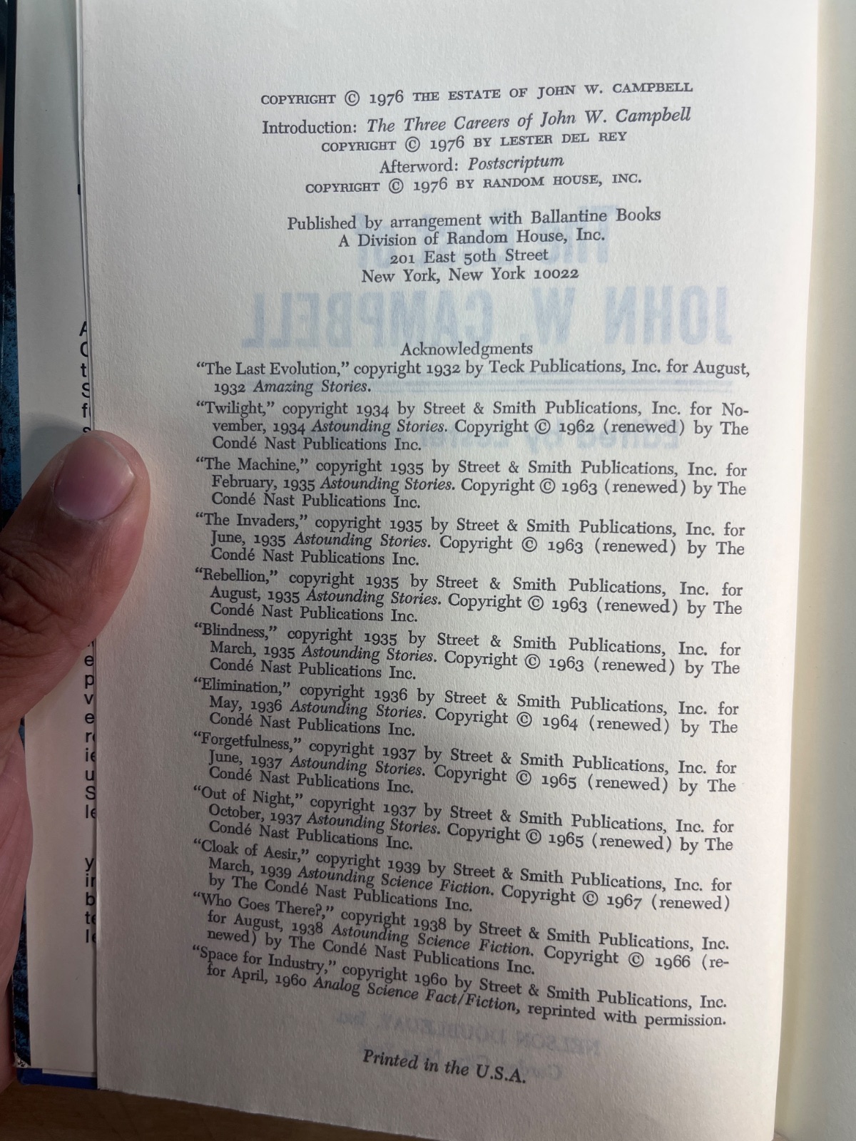 Explore the pioneering science fiction of John W. Campbell with this 1976 Book Club Edition, published by Nelson Doubleday, Inc. Edited by Lester del Rey, this anthology includes some of Campbell’s most influential works. The dust jacket is in good condition, with minor edge wear and a small tear. A must-have for sci-fi enthusiasts and collectors.