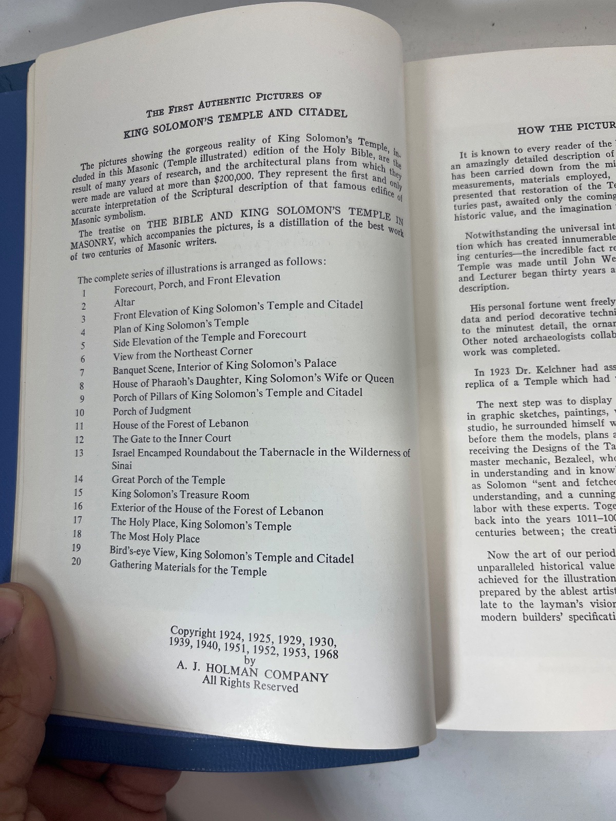 Discover the intricate connections between the Bible and Masonic traditions in “The Bible and King Solomon’s Temple in Masonry” by John Wesley Kelchner. This Temple Illustrated Edition, published by A. J. Holman Company in 1968, offers a unique exploration of King Solomon’s Temple through the lens of Masonic symbolism. Richly illustrated, this volume delves into the architectural grandeur and spiritual significance of the Temple, providing insights into its role within Masonic teachings. Ideal for collectors and enthusiasts of religious history, this edition serves as a bridge between ancient biblical narratives and the esoteric traditions of Freemasonry.