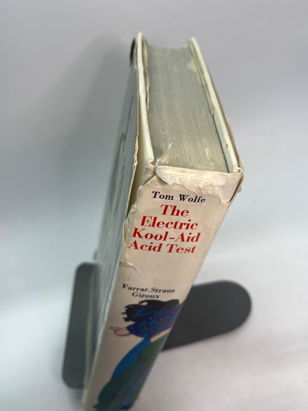 Explore the 1960s counterculture with Tom Wolfe’s “The Electric Kool-Aid Acid Test.” This first printing from 1968 by Farrar, Straus and Giroux captures Ken Kesey’s psychedelic journey across America. The dust jacket shows wear, with tears and discoloration, but the binding and pages are intact. A rare find for collectors and those fascinated by the era’s cultural movements.