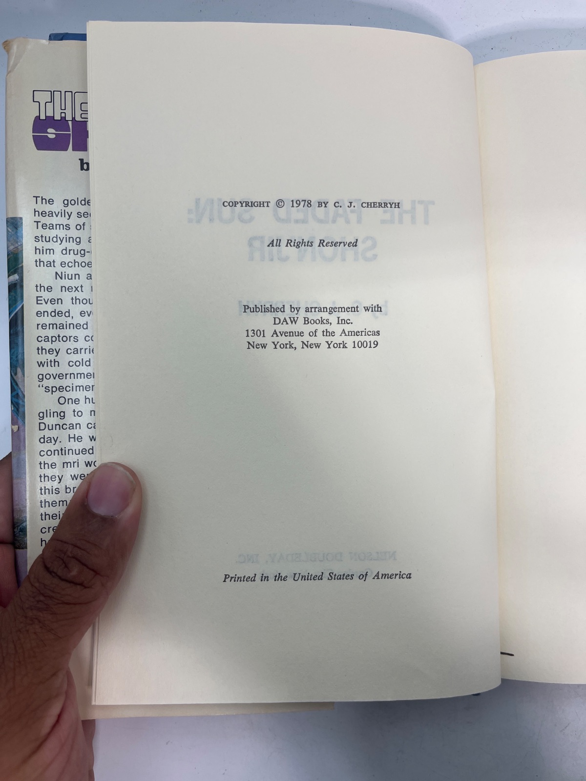 “The Faded Sun: Shon’jir” by C. J. Cherryh, published in 1978 by Nelson Doubleday, Inc., is a gripping science fiction novel exploring alien cultures and interstellar conflict. This vintage hardcover edition features a dust jacket with minor wear and a sturdy binding. Ideal for collectors and fans of space opera.