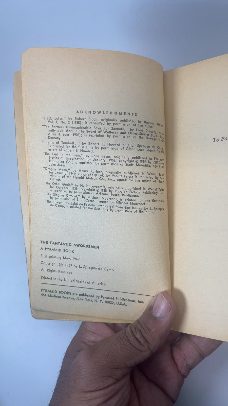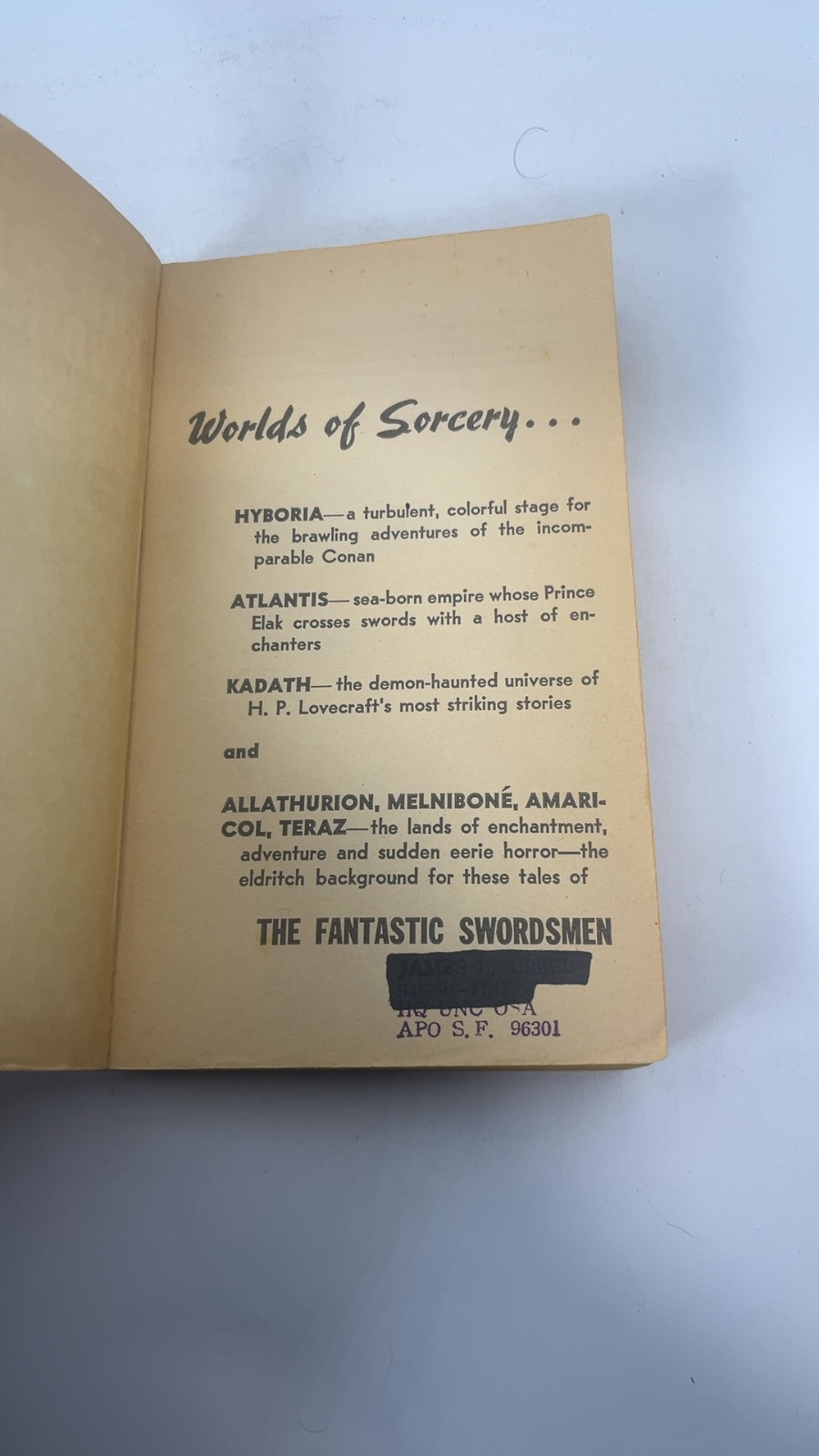 Dive into a world of legendary heroes and mythical realms with “The Fantastic Swordsmen,” edited by the esteemed L. Sprague de Camp. This 1967 first printing from Pyramid Books brings together eight unparalleled tales of heroic fantasy. Featuring iconic characters like Conan, Elak, and Brak, these stories transport readers to enchanted lands filled with wizards, warriors, and epic battles. Renowned authors such as Robert E. Howard, H.P. Lovecraft, and Robert Bloch contribute to this masterful collection, offering a rich tapestry of adventure and magic. With a captivating cover by Jack Gaughan, this volume is a must-have for any fantasy aficionado or collector of classic speculative fiction.