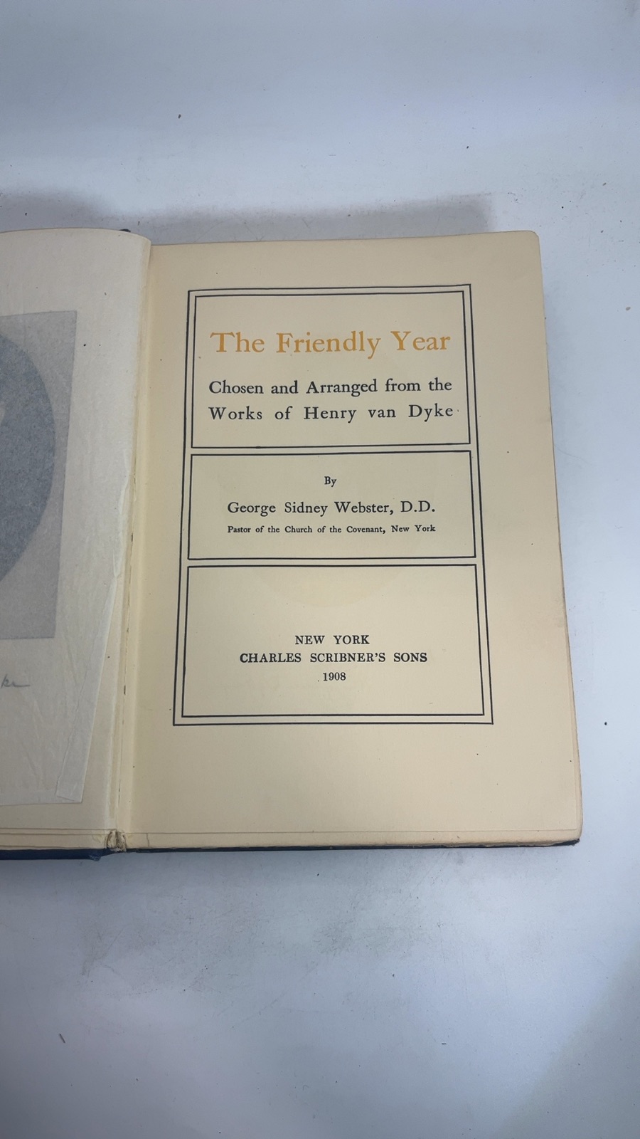 Delve into the timeless wisdom and warmth of “The Friendly Year” by Henry van Dyke, a treasured collection of reflections and inspirations. Published by Charles Scribner’s Sons in 1908, this classic work is thoughtfully arranged by George Sidney Webster. Each page invites readers into a serene world of contemplation, perfect for those seeking solace and insight. The book’s elegant blue cover, adorned with intricate gold detailing, reflects the sophistication and grace found within its pages. Whether you’re a collector of rare books or a lover of classic literature, “The Friendly Year” promises to be a cherished addition to your library.