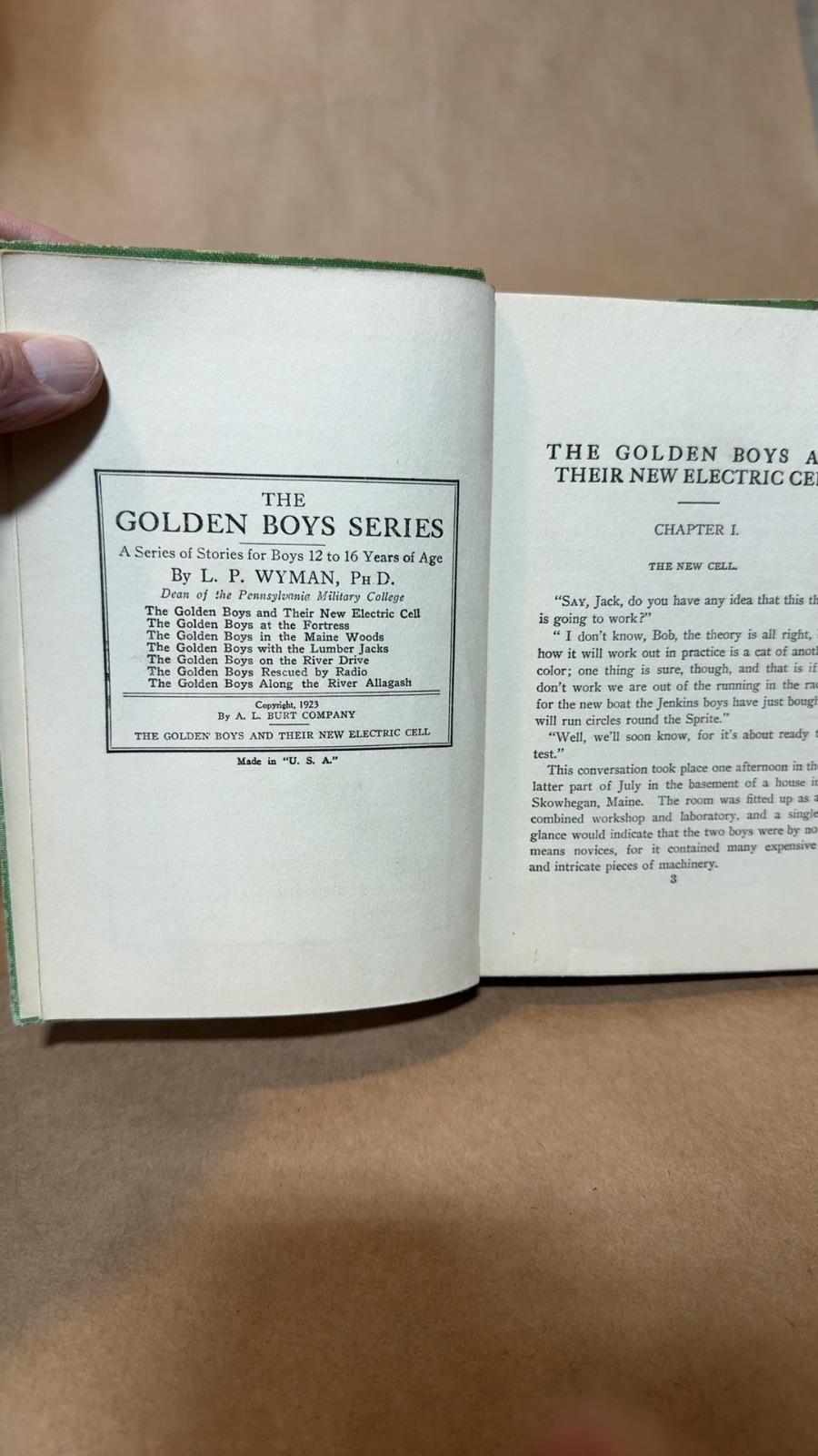 “The Golden Boys and Their New Electric Cell” by L. P. Wyman is an exciting installment in the beloved series aimed at young readers. Set against the backdrop of early 20th-century technological innovation, this adventure follows the Golden Boys as they explore the potential of a new electric cell. Their journey is filled with challenges and discoveries that capture the imagination and spirit of youth. Published by A. L. Burt Company in 1923, this book reflects the era’s enthusiasm for exploration and invention. A perfect addition to any collection of vintage juvenile fiction, it offers a glimpse into the past while entertaining readers with timeless themes of curiosity and bravery.