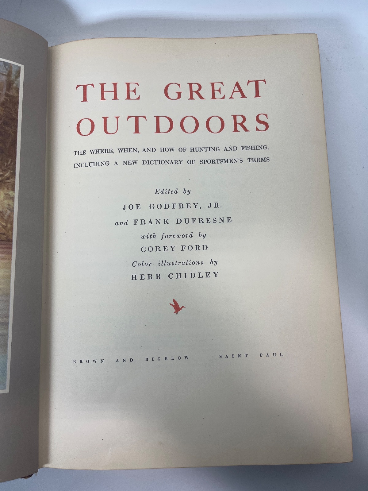 “The Great Outdoors” is a captivating journey into the world of hunting and fishing, edited by Joe Godfrey Jr. and Frank Dufresne. Published in 1947 by Brown and Bigelow, this leather-bound first edition offers a comprehensive guide to the where, when, and how of outdoor sports, complete with a new dictionary of sportsmen’s terms. Enhanced with vibrant color illustrations by Herb Chidley and a foreword by Corey Ford, this book is a treasure for enthusiasts of nature and sport. Whether you’re a seasoned outdoorsman or a curious beginner, the detailed narratives and exquisite artwork make this volume a cherished addition to any collection.