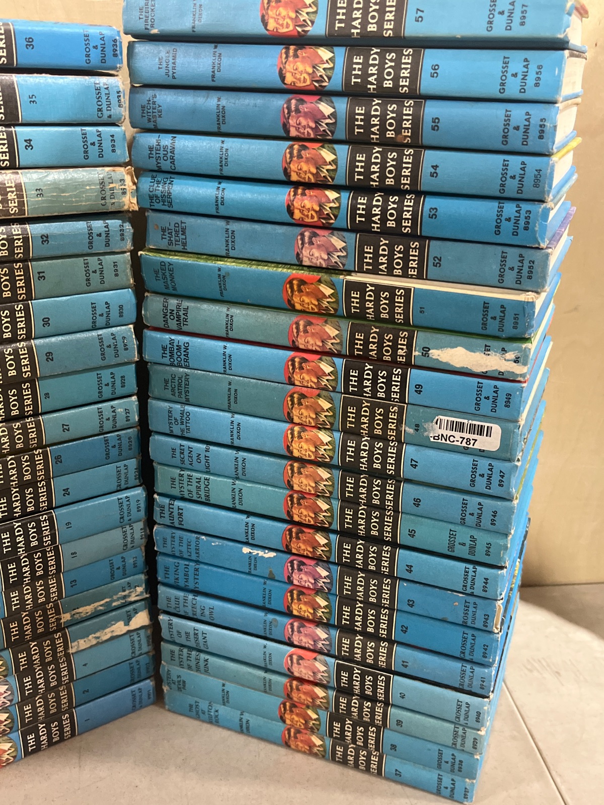 Dive into nostalgia with this captivating collection of 41 Hardy Boys books featuring the classic matte blue covers. Written by Franklin W. Dixon and published by Grosset & Dunlap, these vintage editions transport readers to a world of mystery and adventure. Follow the Hardy brothers as they unravel thrilling cases, each more intriguing than the last. This mixed lot offers a unique opportunity for collectors and enthusiasts to own a piece of literary history, with each book promising hours of engaging storytelling. Whether you’re a long-time fan or new to the series, this collection is a treasure trove of excitement and suspense.