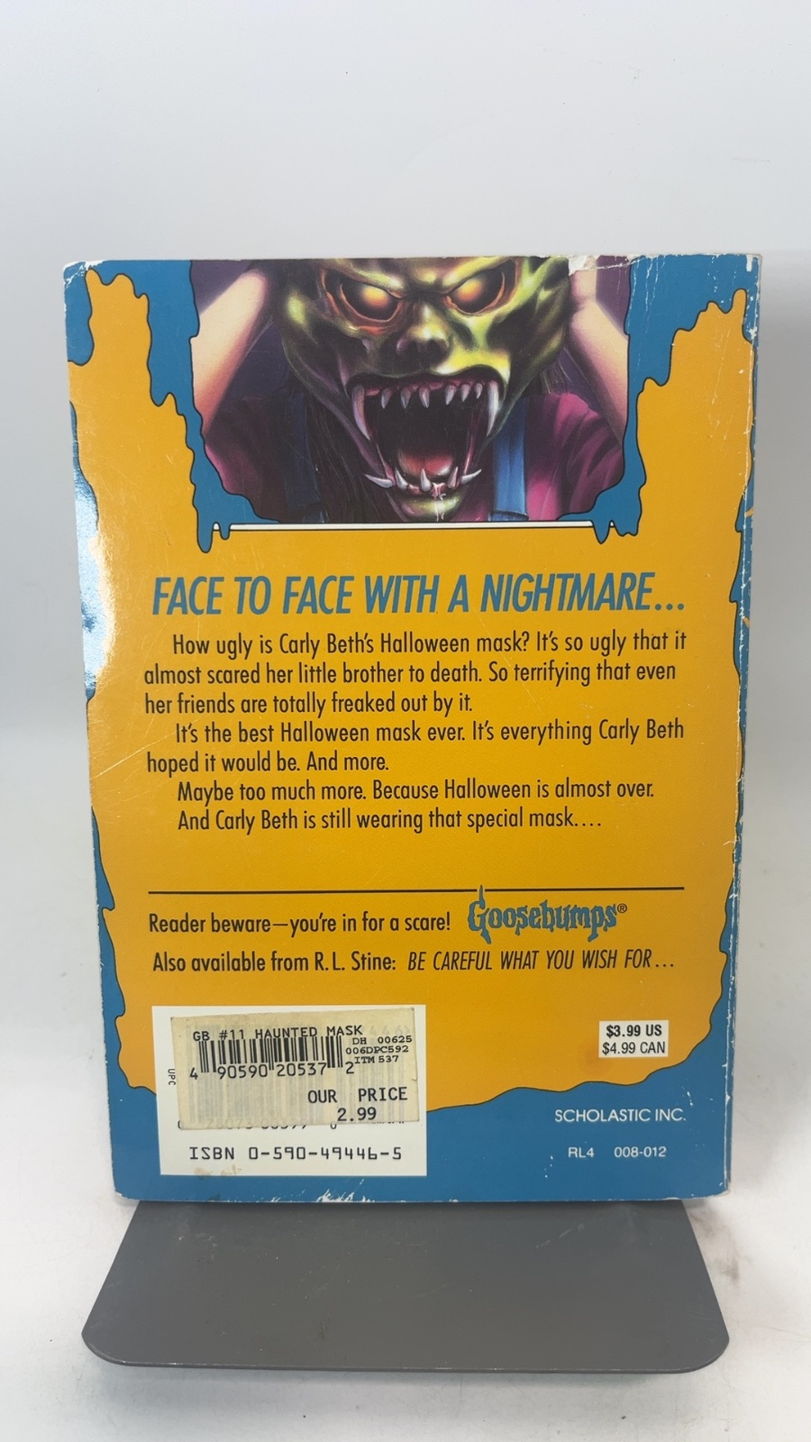 Dive into the spine-tingling world of R.L. Stine’s “The Haunted Mask,” a captivating entry in the beloved Goosebumps series. This first Scholastic printing from September 1993 invites readers to experience the chilling tale of Carly Beth, whose quest for the ultimate Halloween mask leads her into a nightmarish adventure. The mask, terrifyingly lifelike, begins to take over Carly Beth’s personality, leading her friends and family to question if it’s just a costume or something more sinister. Perfect for young readers and nostalgic adults alike, this book combines humor and horror, making it a staple of any Goosebumps collection. With its vibrant cover and a special mask insert, this edition is a must-have for fans of the series.