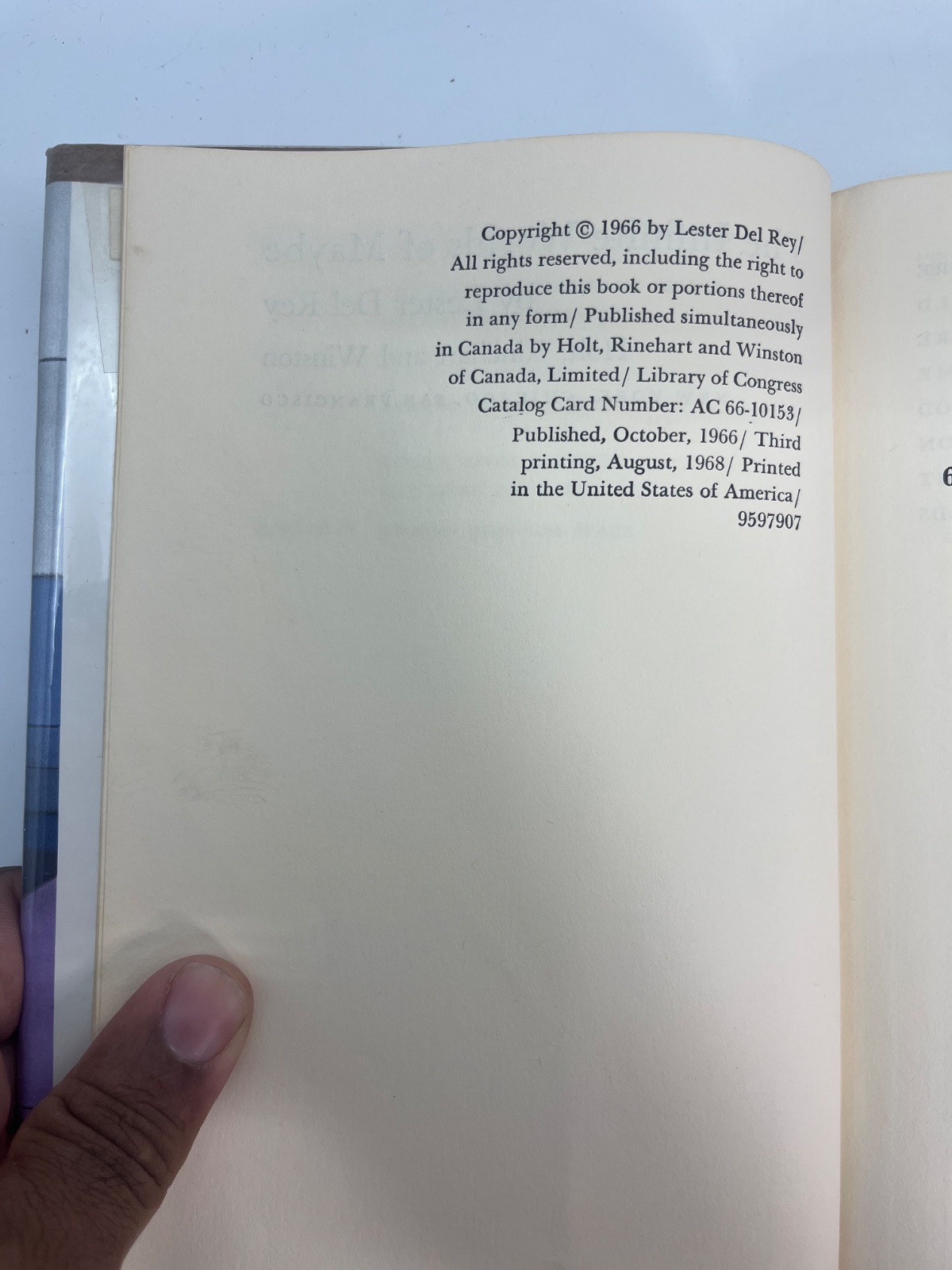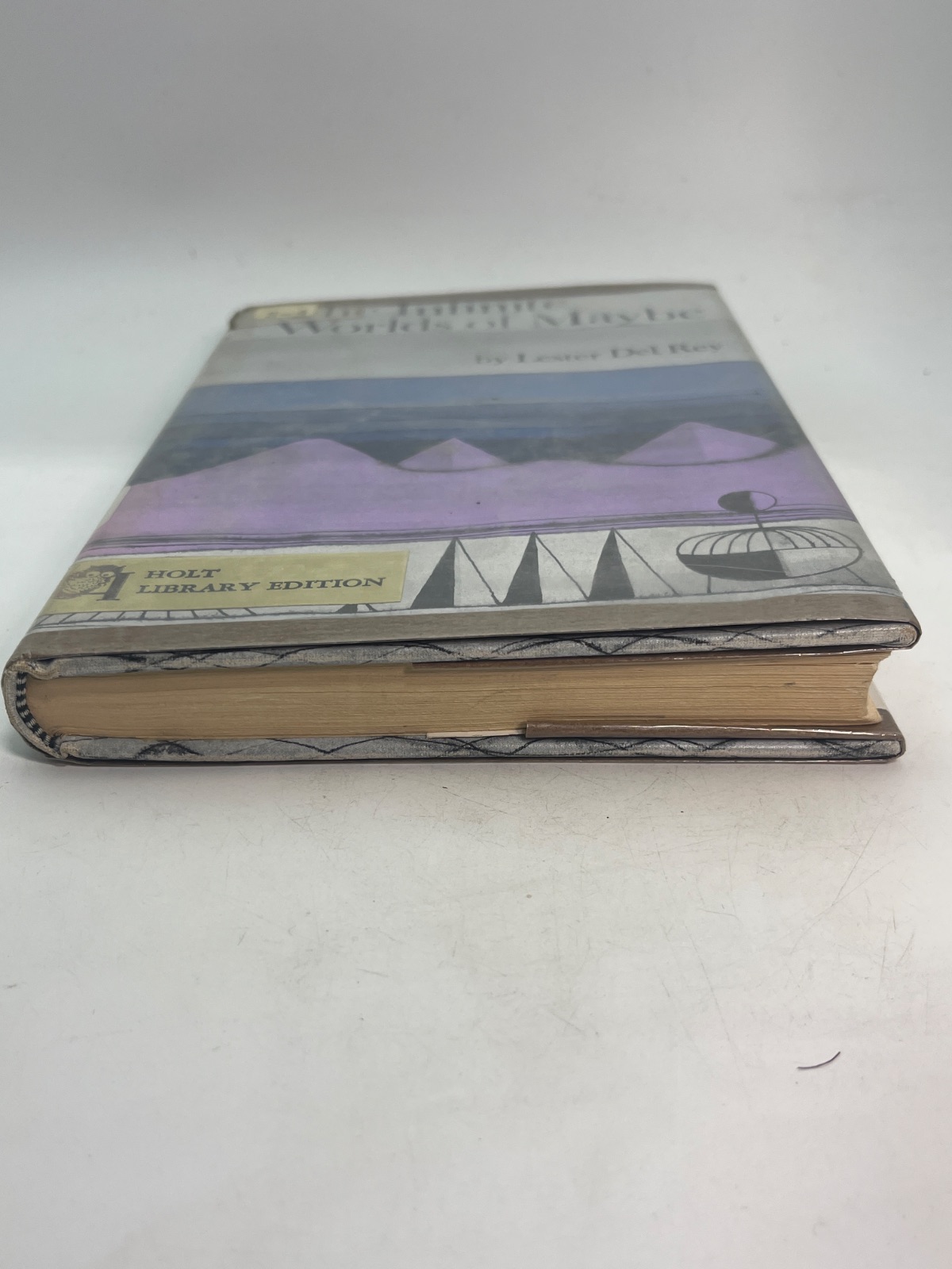 Explore alternate realities in Lester Del Rey’s “The Infinite Worlds of Maybe.” This 1966 novel, in its third printing from 1968, delves into the possibilities of parallel universes. With a good-condition dust jacket and library markings, it remains a collector’s gem. Perfect for fans of classic science fiction, this book invites readers into a world of endless possibilities.