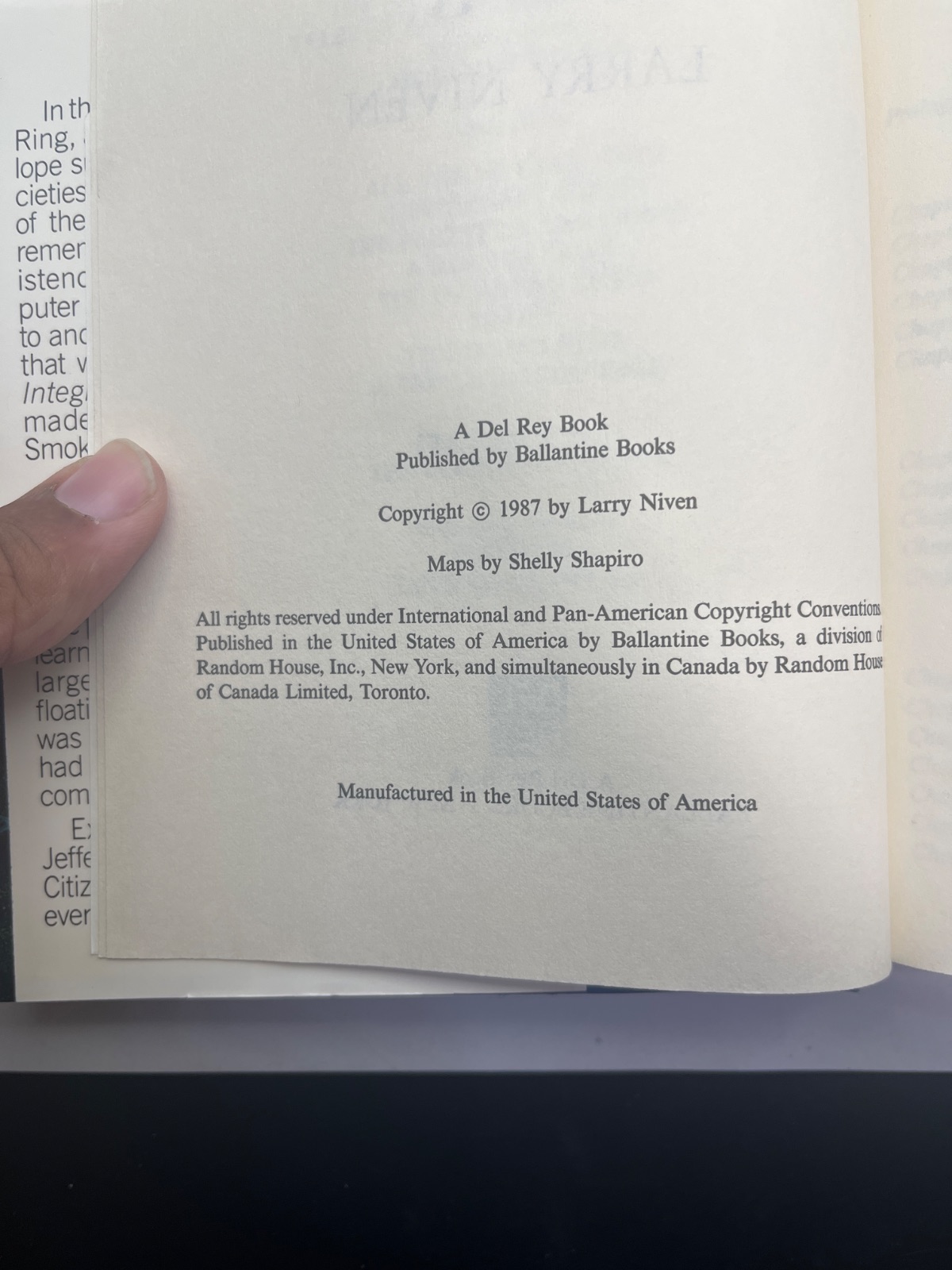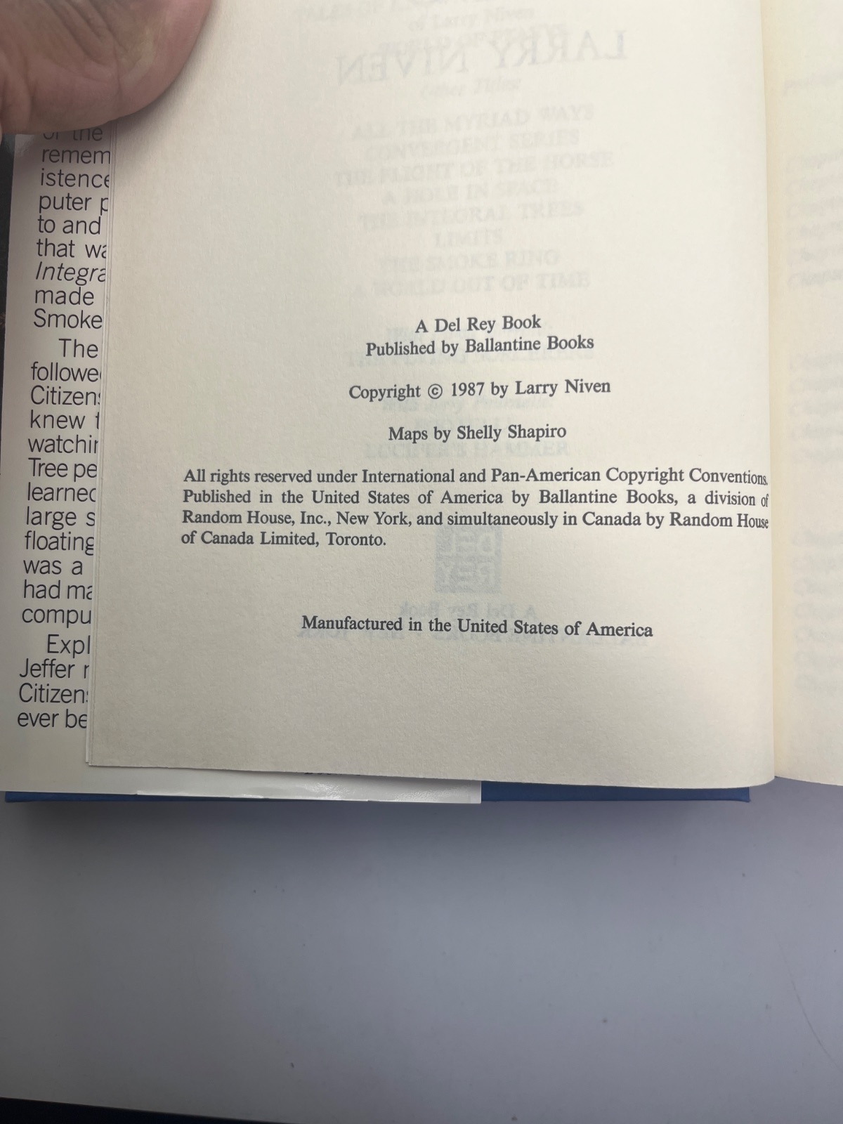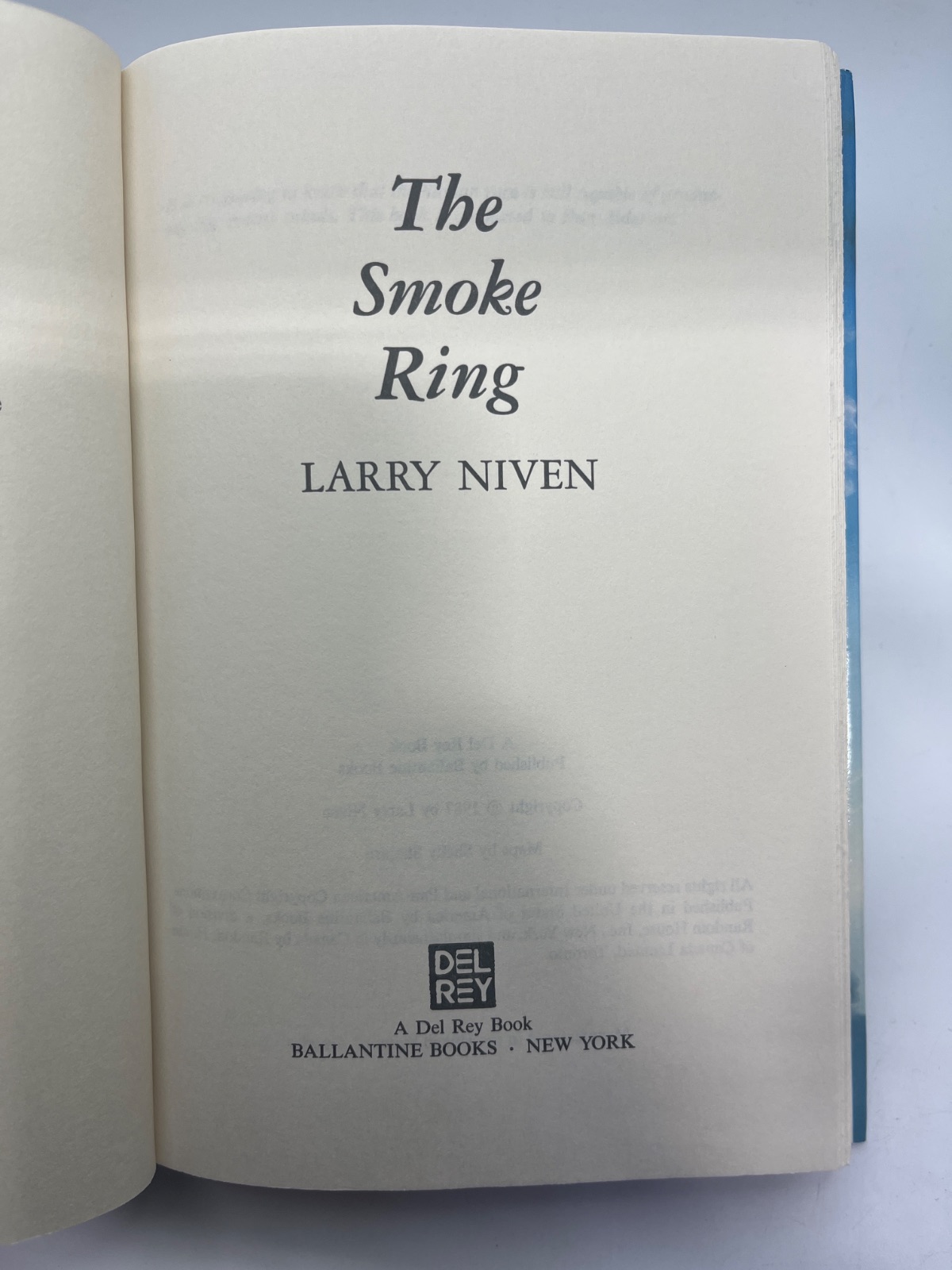 Explore Larry Niven’s visionary science fiction with “The Integral Trees” and “The Smoke Ring,” published by Ballantine Books. These novels transport you to a gravity-free world of floating trees and human adaptation. “The Smoke Ring” was released in 1987. Both books are in good condition, with minor edge wear on the dust jackets, and are free of inscriptions or library marks. Perfect for collectors and sci-fi fans alike.