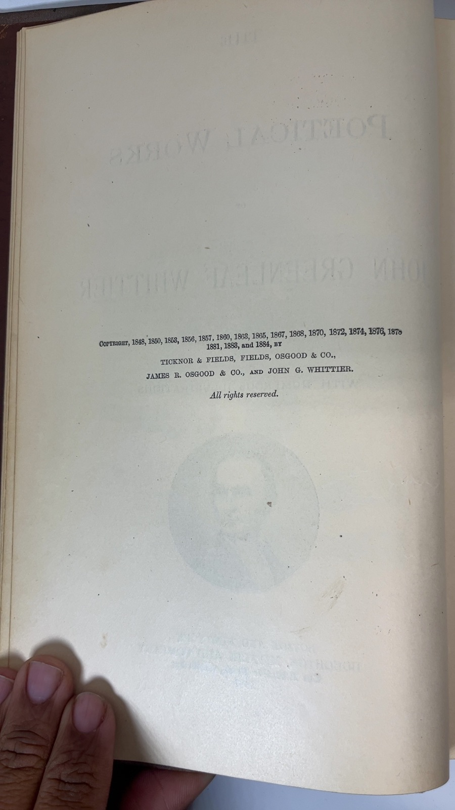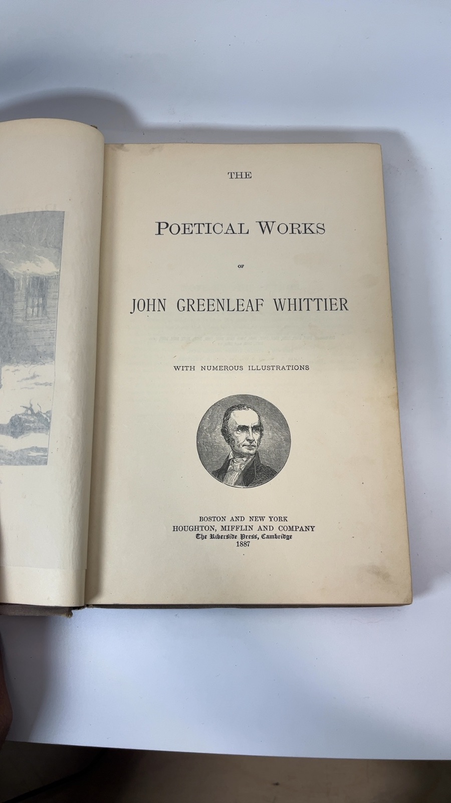 Immerse yourself in the evocative world of 19th-century American poetry with “The Poetical Works of John Greenleaf Whittier.” Published in 1887 by Houghton, Mifflin and Company, this beautifully illustrated volume captures the essence of Whittier’s profound reflections on nature, humanity, and spirituality. Known for his abolitionist stance and vivid imagery, Whittier’s poetry resonates with themes of justice and moral integrity. This edition, published in Boston and New York, is a testament to the enduring legacy of one of America’s cherished poets. The intricate cover design and numerous illustrations enhance the reading experience, making this a treasured addition to any rare book collection.