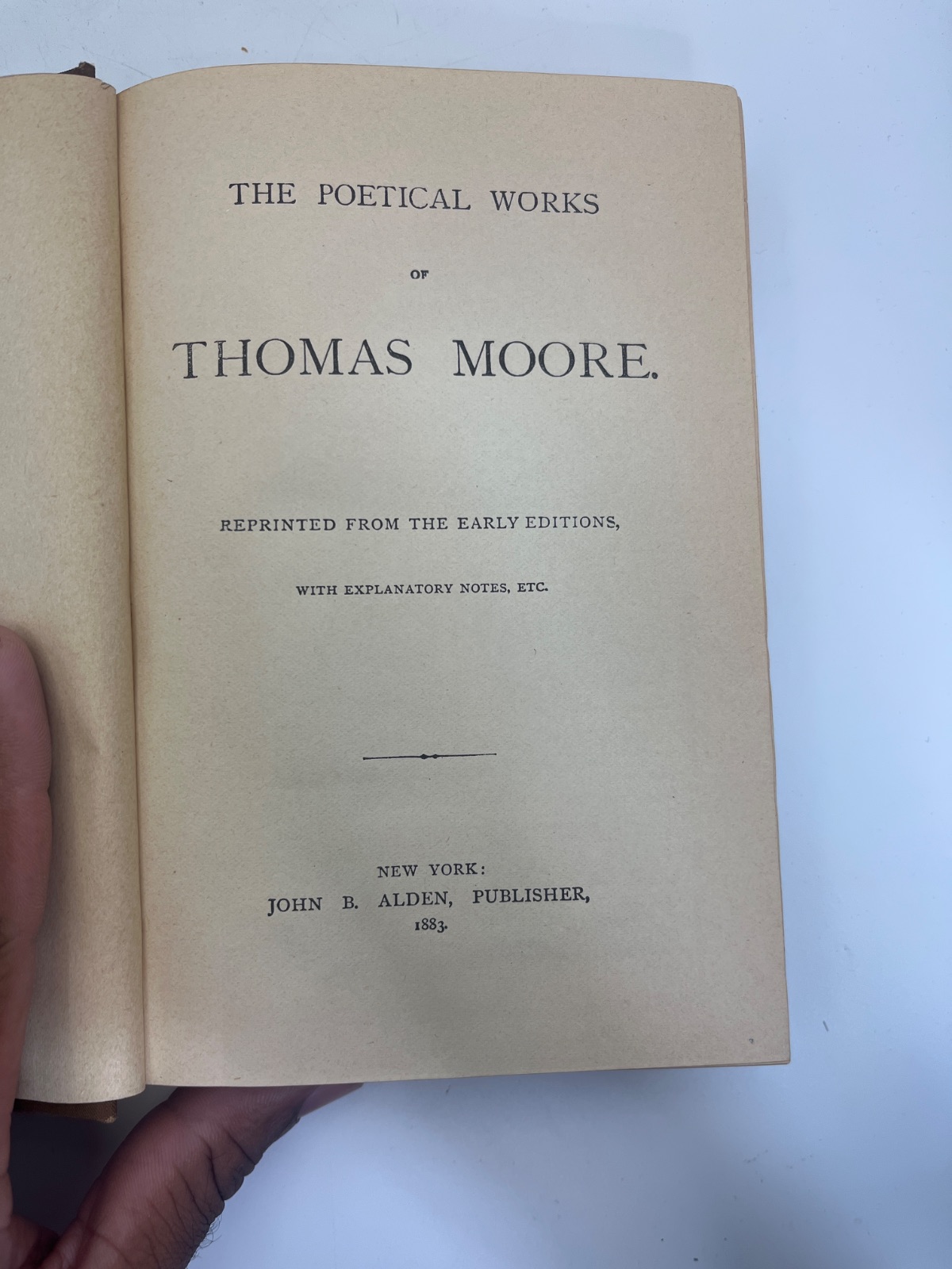 Step into the lyrical world of Thomas Moore with “The Poetical Works of Thomas Moore,” an exquisite collection reprinted from the early editions. Published in 1883 by John B. Alden in New York, this volume captures the romantic and patriotic spirit of Moore’s poetry. Known for his melodic verse and emotional depth, Moore’s work remains a cornerstone of 19th-century literature. This edition, with its ornate cover and gold embellishments, is a testament to the era’s craftsmanship and the enduring appeal of Moore’s words. Ideal for collectors and poetry enthusiasts alike, this book invites readers to explore the rich tapestry of themes that define Moore’s legacy.