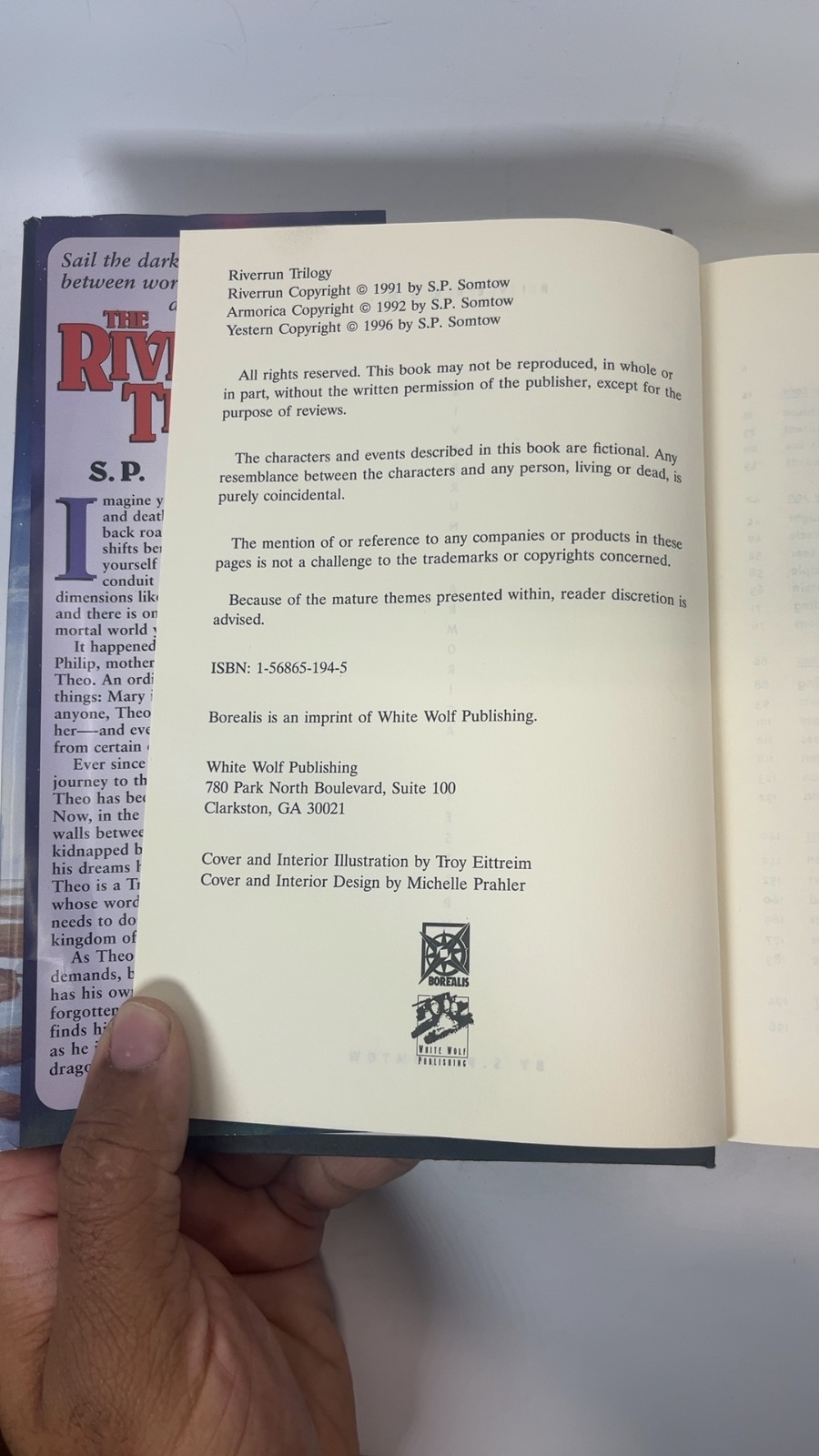 Dive into the captivating world of “The Riverrun Trilogy” by S.P. Somtow, a masterful blend of fantasy and science fiction. This omnibus edition brings together the enthralling narratives of “Riverrun,” “Armorica,” and the never-before-published “Yestern.” Set against a backdrop of alternate realities, the trilogy follows the journey of Theo, a young boy who discovers his unique ability to traverse between worlds. With vivid illustrations by Troy Eittreim, this edition invites readers into a universe where dragons soar and ancient secrets await. Published by White Wolf Publishing, this volume is a treasure for collectors and fans of imaginative storytelling.