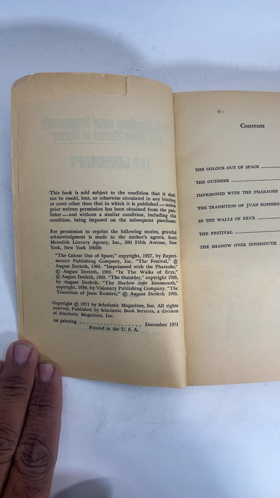 Dive into the eerie world of H. P. Lovecraft with “The Shadow over Innsmouth and Other Stories of Horror.” This collection, published by Scholastic Book Services in 1971, brings together some of Lovecraft’s most chilling tales, including the titular story of Innsmouth, a town shrouded in mystery and terror. Lovecraft, often hailed as the 20th-century Edgar Allan Poe, masterfully weaves narratives that explore the boundaries of sanity and the supernatural. This first printing is a must-have for collectors and fans of classic horror, offering a guided tour through Lovecraft’s mind—a place where the bizarre and the terrifying coexist in haunting harmony.