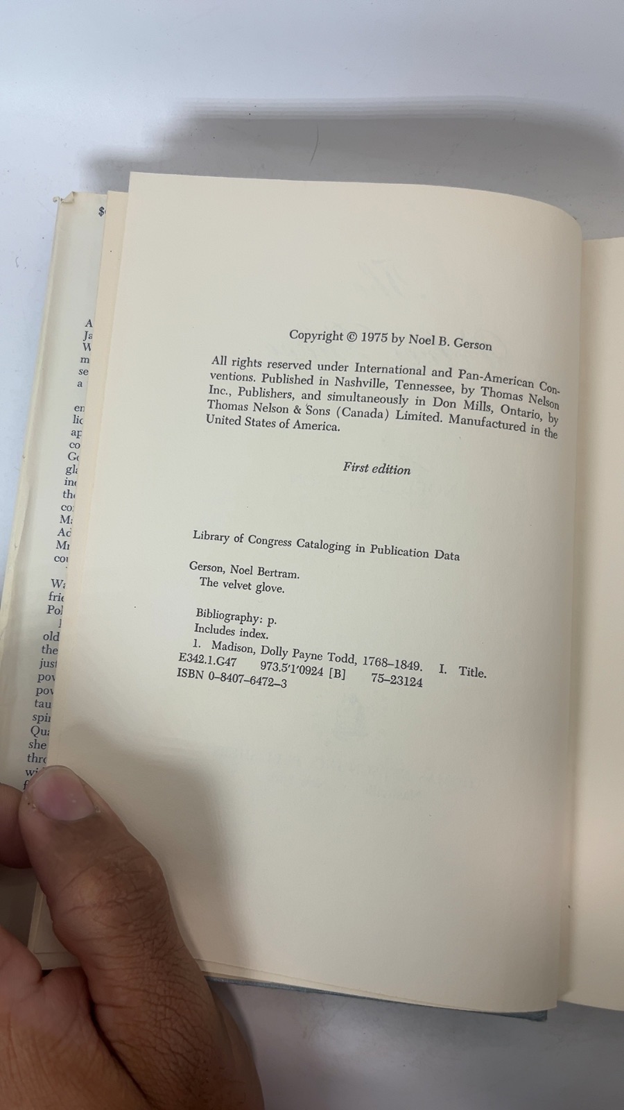 “The Velvet Glove” by Noel B. Gerson offers a captivating exploration into the life of Dolly Madison, one of America’s most influential First Ladies. Published by Thomas Nelson Inc. in 1975, this first edition provides a detailed biography that delves into Madison’s significant role in shaping the social and political landscape of early America. Gerson’s narrative brings to life the elegance and determination of a woman who wielded her influence with grace and charm, earning her the affectionate nickname, “The Velvet Glove.” This book is an essential addition for collectors and history enthusiasts interested in the personal and public life of one of America’s iconic figures.