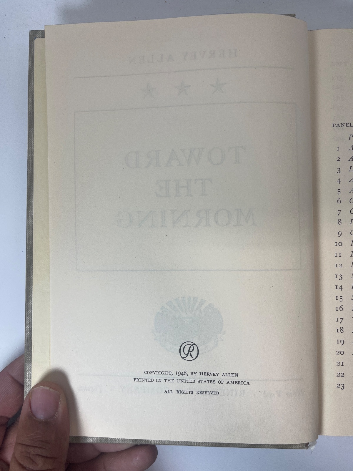 Step into the vivid world of the American South with Hervey Allen’s “Toward the Morning,” a captivating historical fiction novel published by Rinehart & Company in 1948. Allen, known for his rich storytelling and intricate character development, transports readers to a time of transformation and challenge. This novel explores themes of resilience and change, capturing the essence of a bygone era with authenticity and detail. Ideal for collectors and enthusiasts of historical narratives, this work stands as a testament to Allen’s literary prowess. Whether you are a long-time admirer or a new reader, “Toward the Morning” promises a journey through history that is both enlightening and engaging.