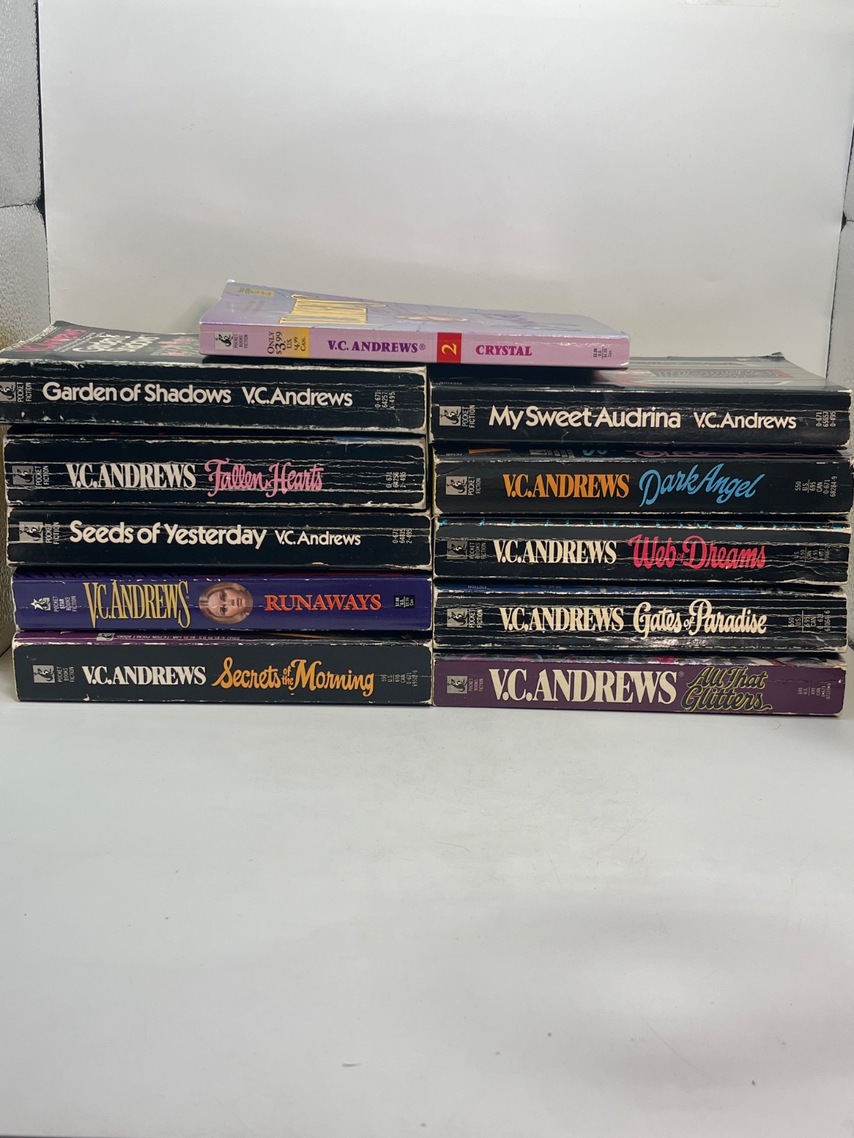 Dive into the captivating world of V.C. Andrews with this mixed lot of 11 novels, each weaving tales of family secrets, drama, and gothic intrigue. Known for her gripping storytelling and complex characters, Andrews takes readers on a journey through generations of mystery and emotion. This collection includes beloved titles such as “Garden of Shadows,” “My Sweet Audrina,” and “Dark Angel.” Each book is a testament to Andrews’ ability to craft enthralling narratives that explore the darker sides of family dynamics and personal struggles. A must-have for collectors and fans of gothic fiction, this lot offers a comprehensive glimpse into the hauntingly beautiful worlds Andrews creates.