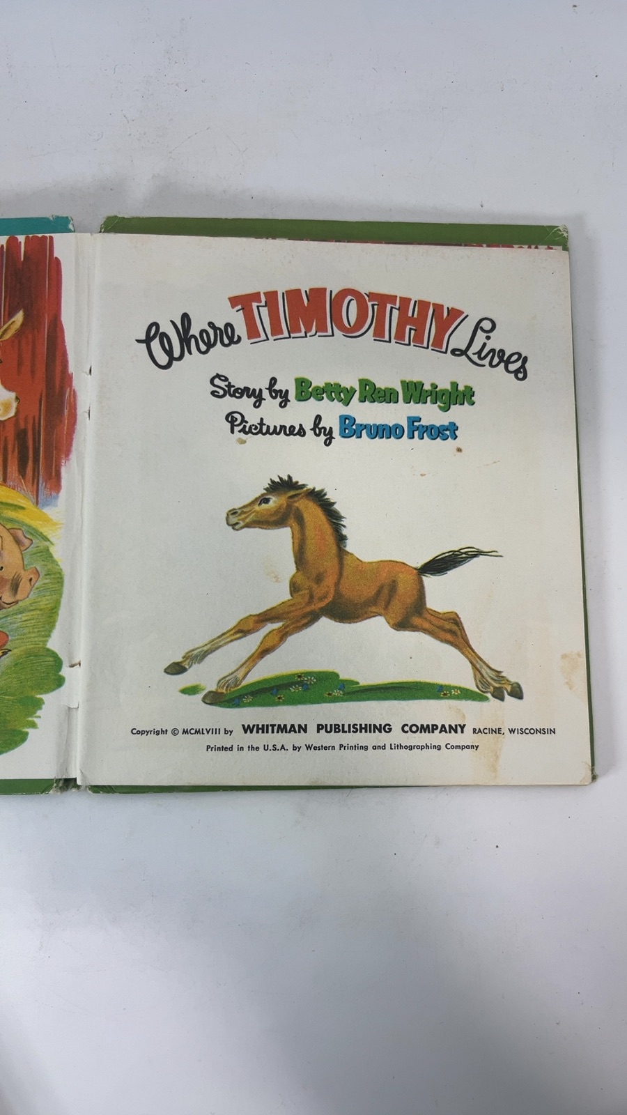 “Where Timothy Lives” by Betty Ren Wright is a charming children’s book that takes young readers on a delightful journey to a lively farm where Timothy, the spirited horse, resides. Illustrated by Bruno Frost, this book is part of the beloved Tell-a-Tale series, known for captivating stories and vibrant artwork. Published by Whitman Publishing Company in 1958, this vintage treasure captures the essence of farm life and the joy of animal companionship. Perfect for collectors and young readers alike, “Where Timothy Lives” offers timeless storytelling that continues to enchant generations.